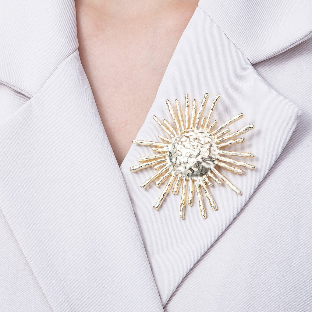 Gold Hammered Celestial Sun Pin Brooch | BH-032