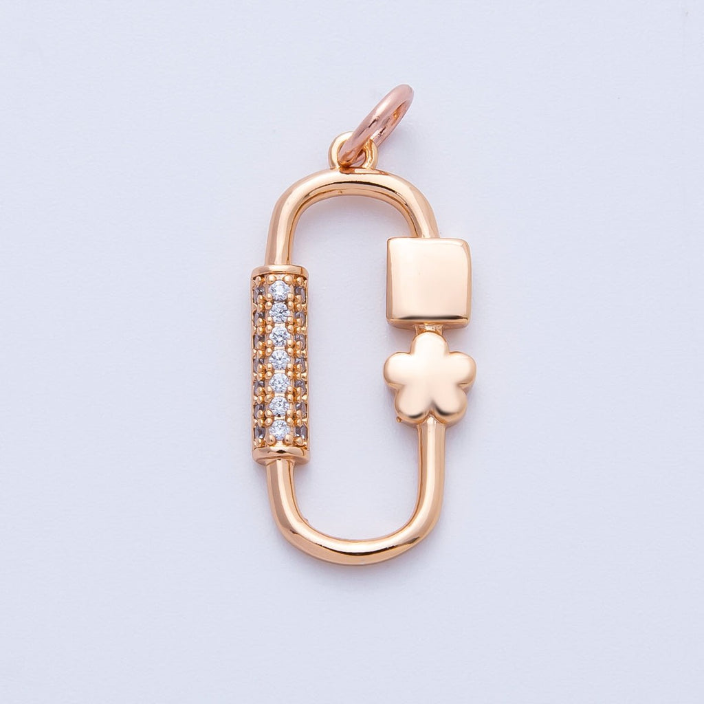Rose Gold Filled 22mm Micro Paved CZ Flower Oblong Carabiner Link Charm | Charms-00396
