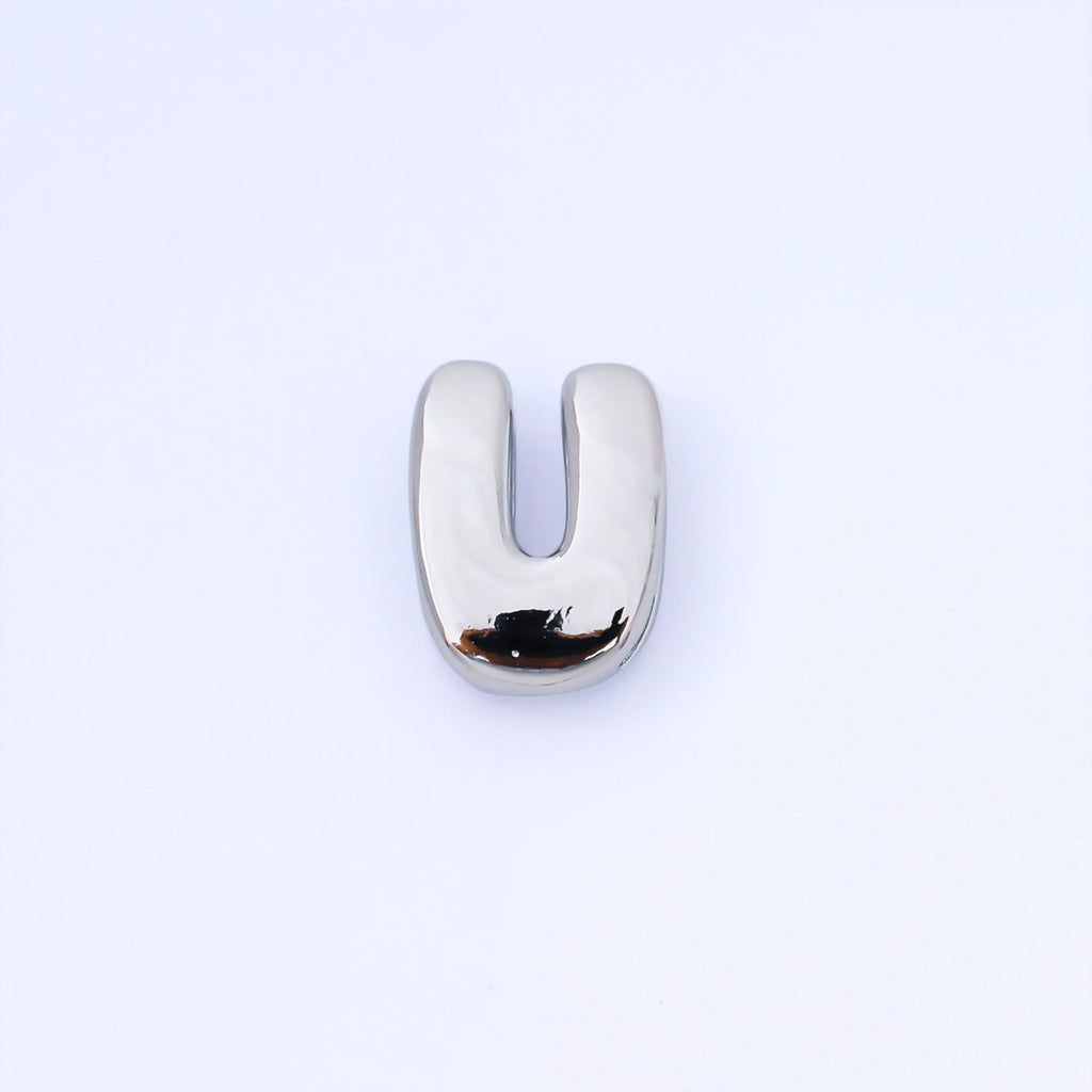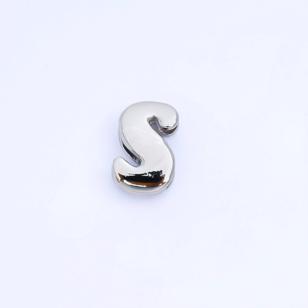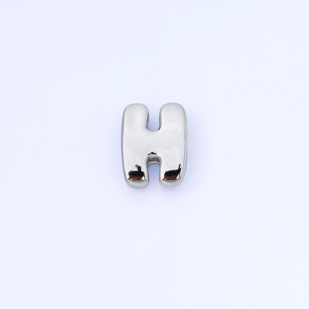 Silver 20mm Personalized Cord Chubby Bubble Initial Letter Alphabet Bead | AF118 - AF130