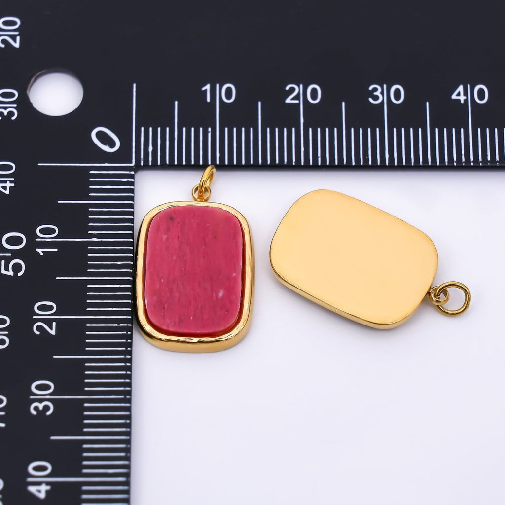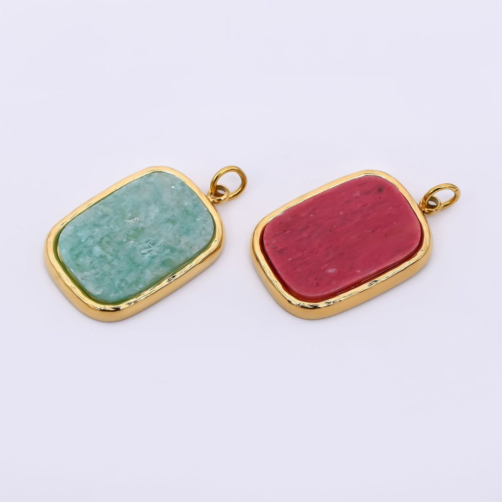 Stainless Steel 21mm Rectangle Natural Gemstone Amazonite & Red Jasper Foil Pendant Charm | J-354