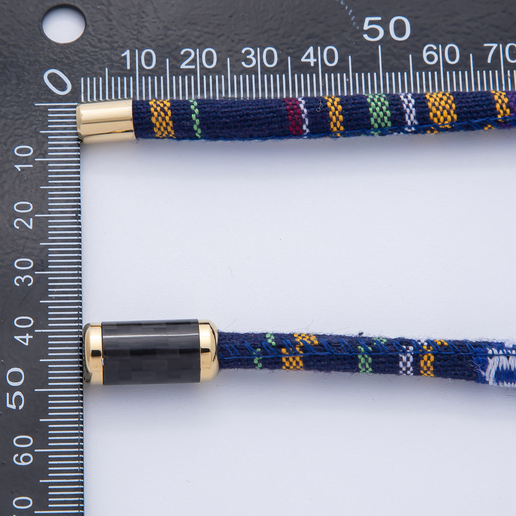 10mm Blue Multicolor Embroidered Fabric Cord 16.54 Inch Necklace | WA-3954
