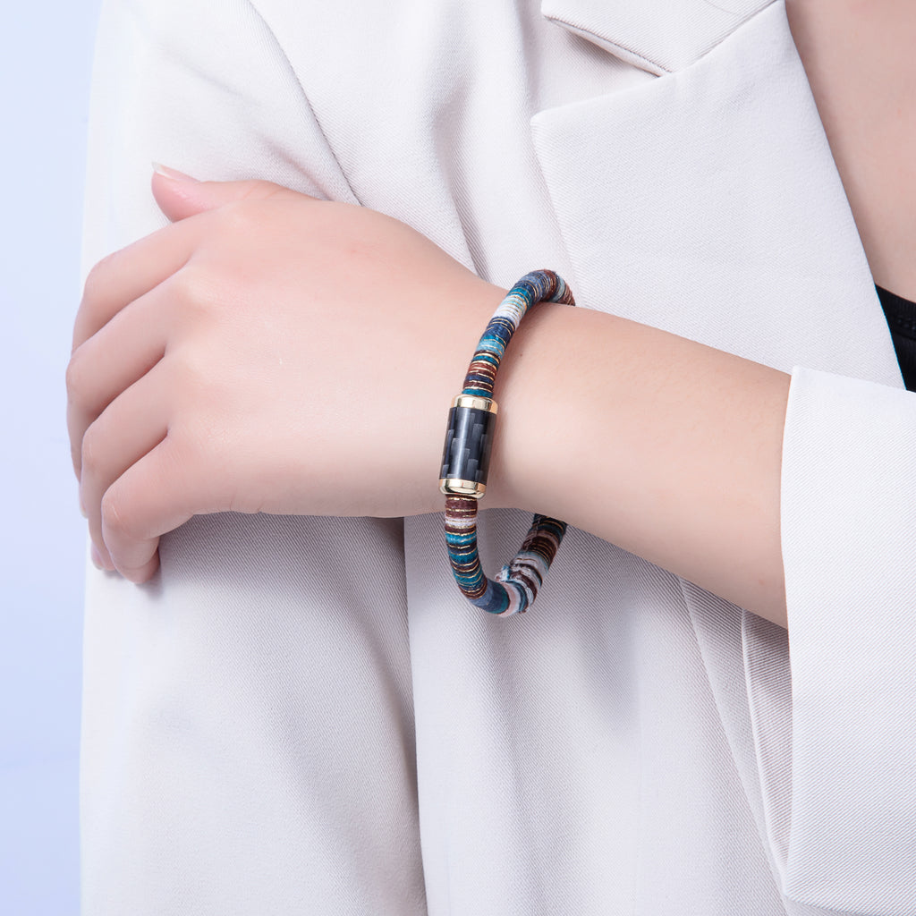 10mm Multicolor Gold-Lined Embroidered Fabric Cord 8.86 Inch Bracelet | WA-3964
