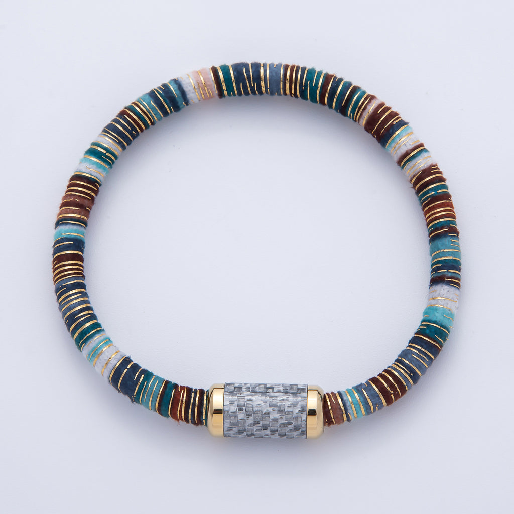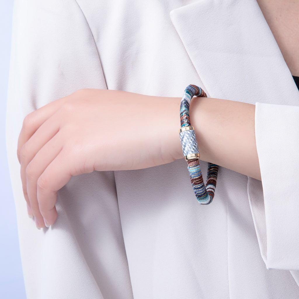10mm Multicolor Gold-Lined Embroidered Fabric Cord 8.86 Inch Bracelet | WA-3965