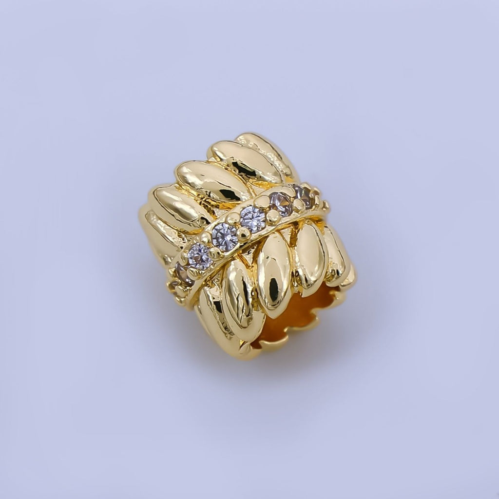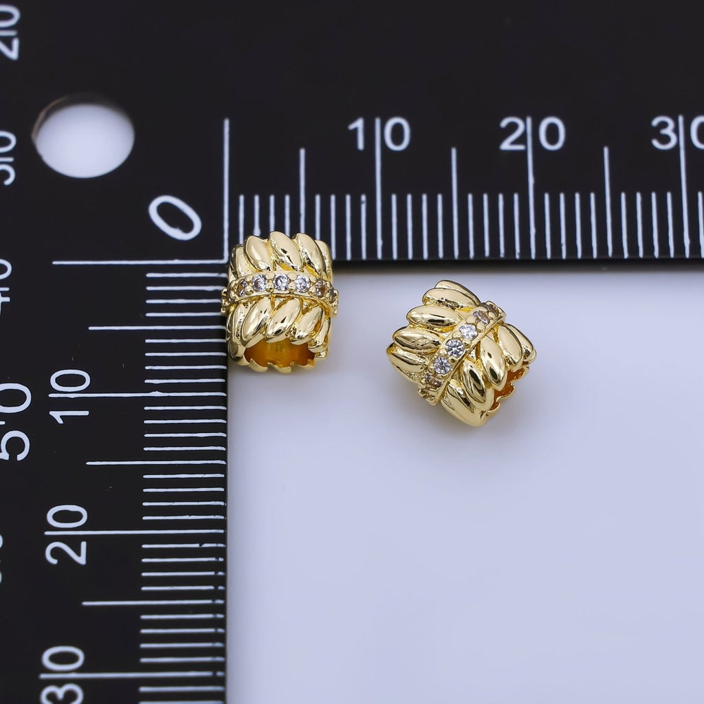 24K Gold Filled 8mm Micro Paved CZ Leaf Pattern Bead Spacer | B478
