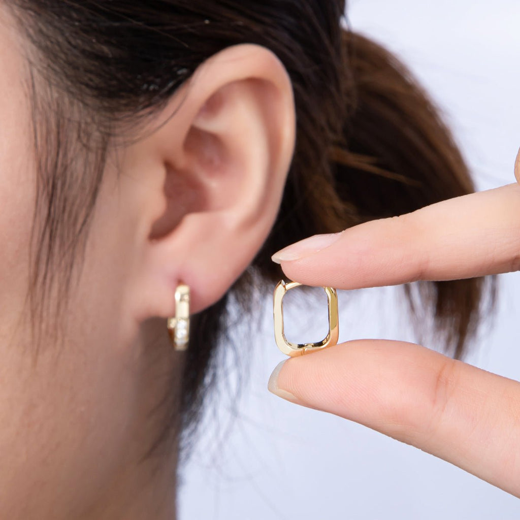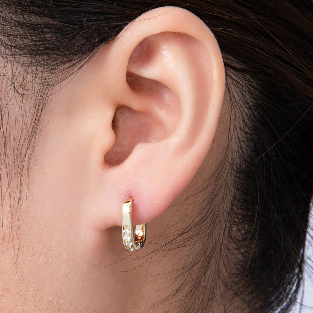 14K Gold Filled 14mm Micro Paved CZ Oblong Hoop Earrings | Earrings-00137