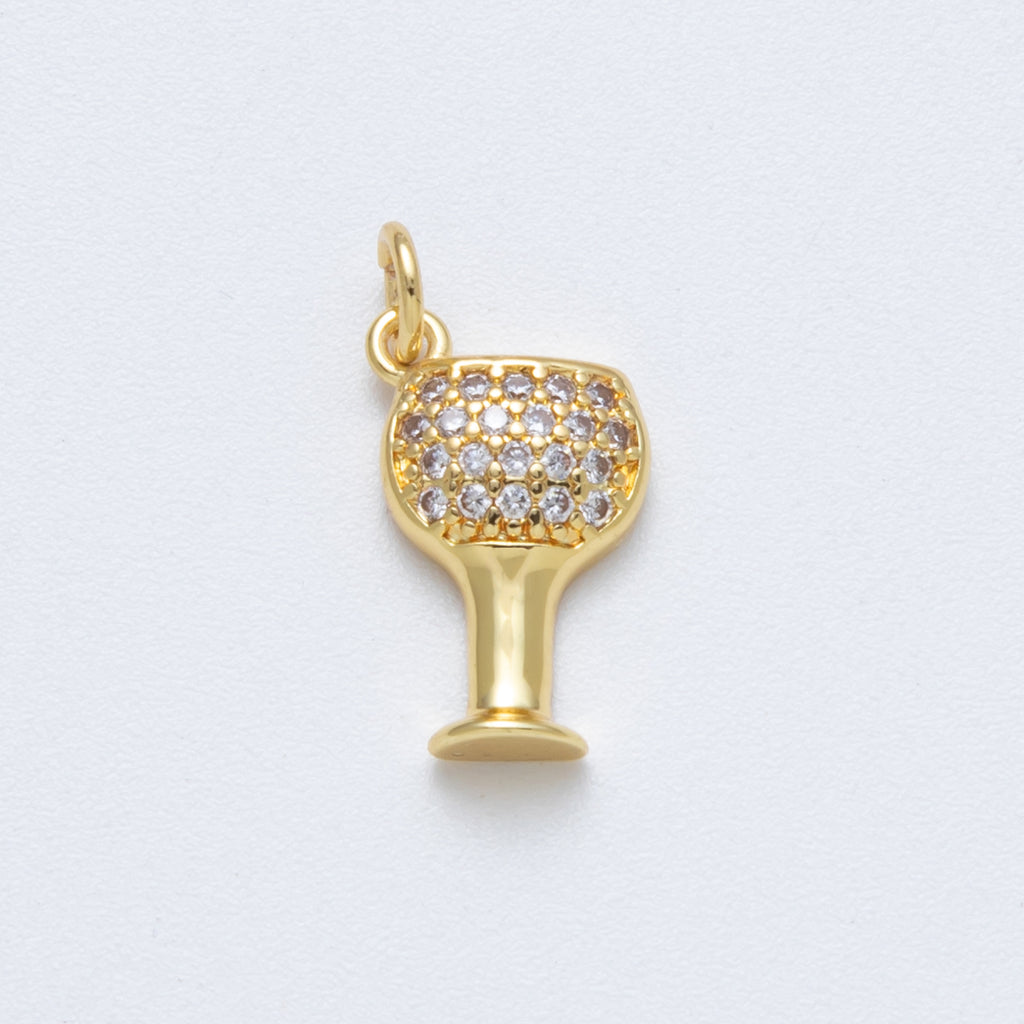 14K Gold Filled 16.6mm Micro Paved CZ Champagne Wine Charm | Charms-00039