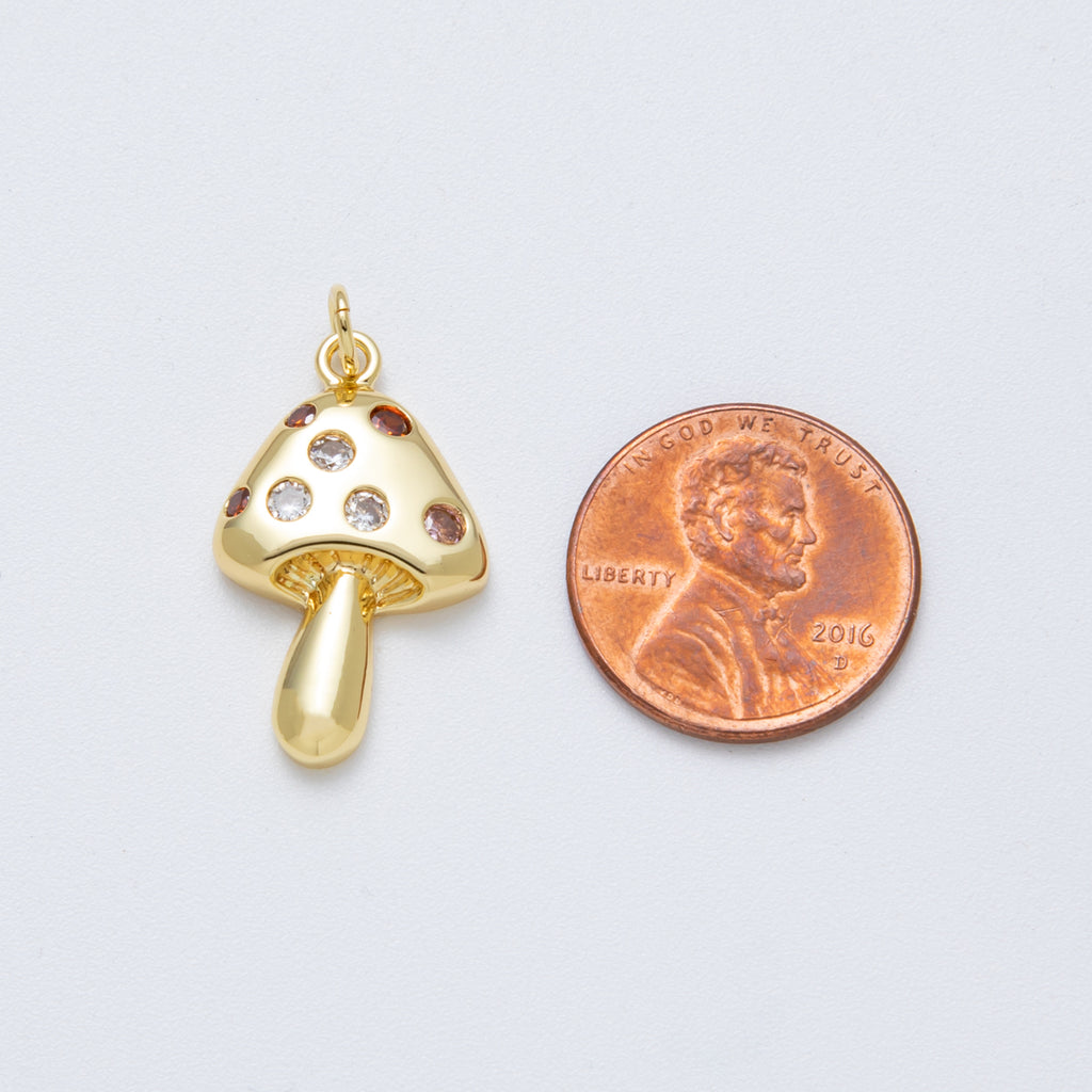 14K Gold Filled 24.5mm Multicolor CZ Dotted Mushroom Plant Charm | Charms-00041