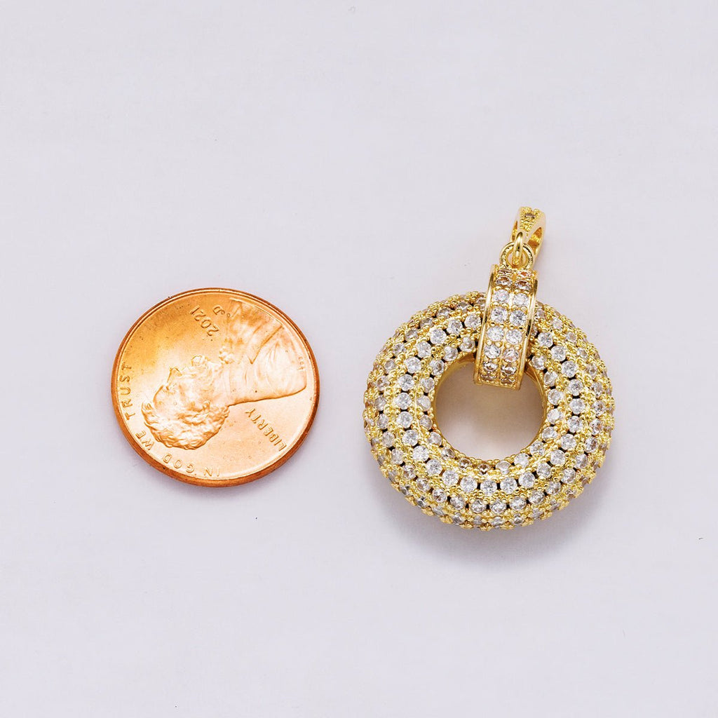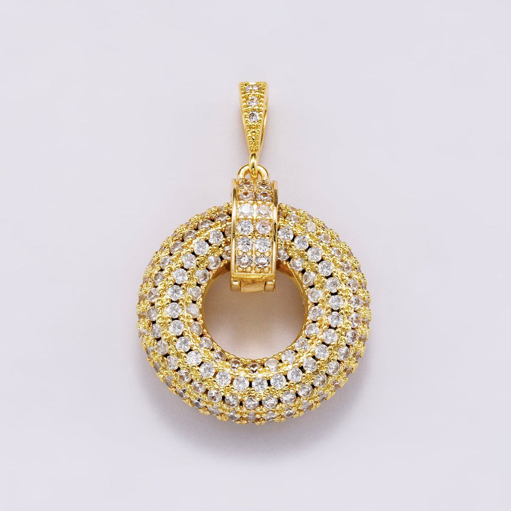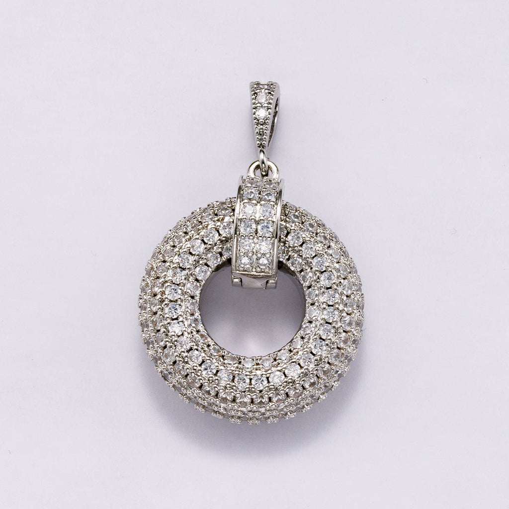 14K Gold Filled 35mm Micro Paved CZ Open Round Pendant in Gold & Silver | Charms-00560 Charms-00561