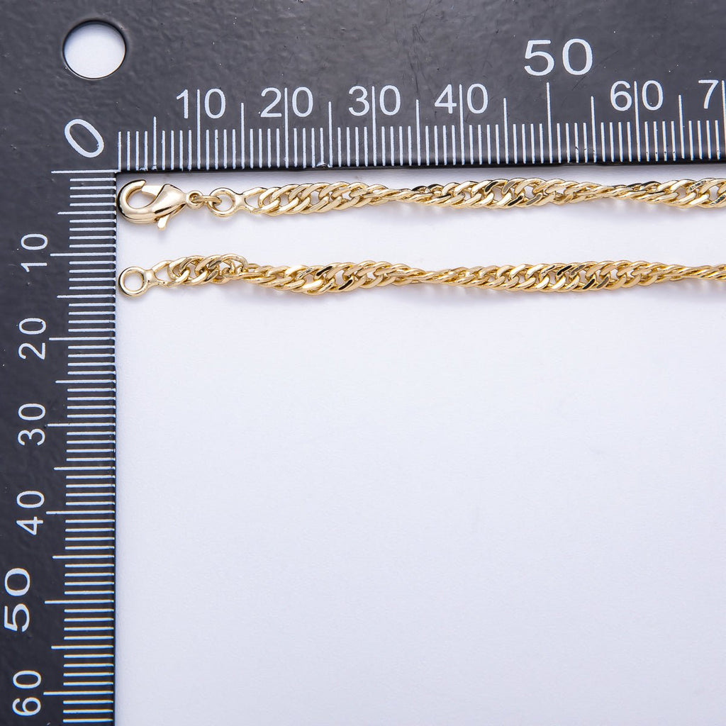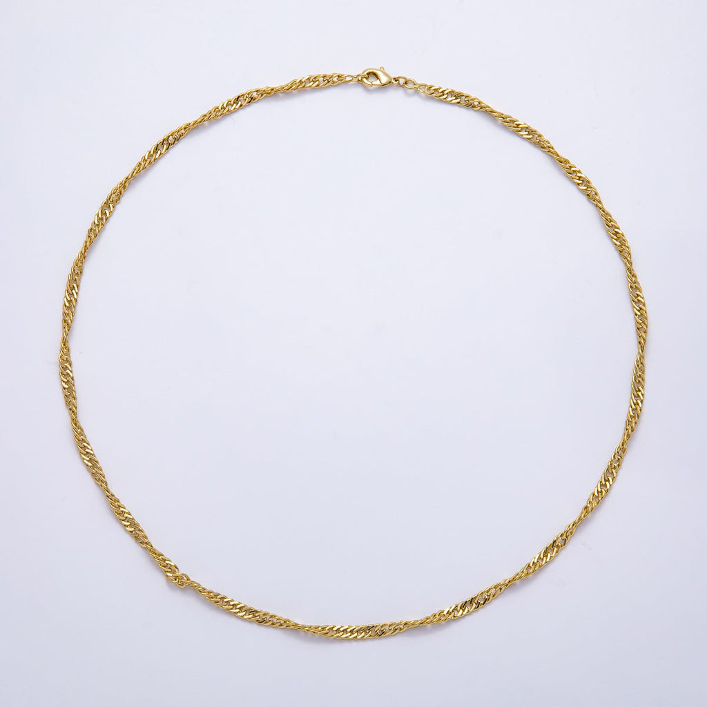 14K Gold Filled 3mm Minimalist Singapore Twist Chain 18 Inch Necklace | WA-04300