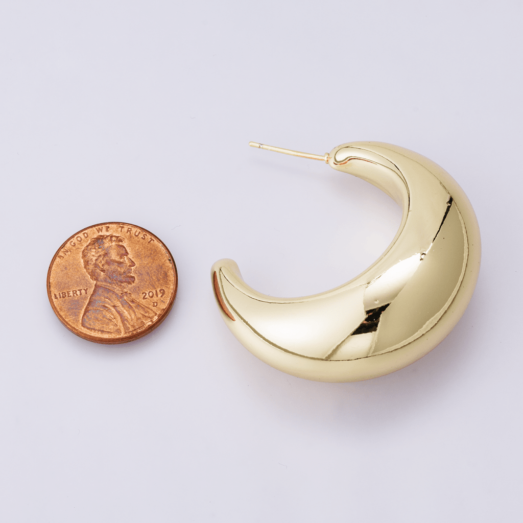 14K Gold Filled 40mm Minimalist Dome C-Shaped Hoop Earrings | P00408