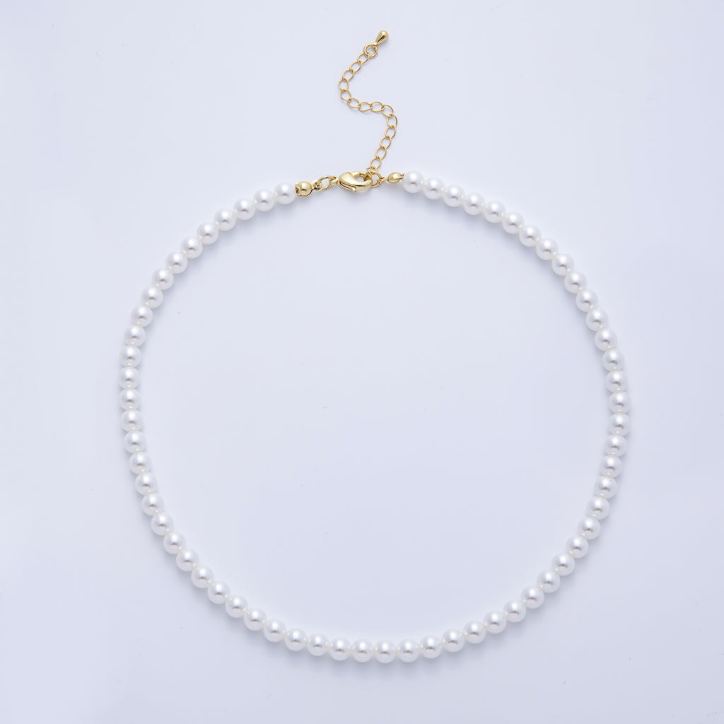 14K Gold Filled 6mm White Natural Shell Pearl Choker Necklace | WA-4060