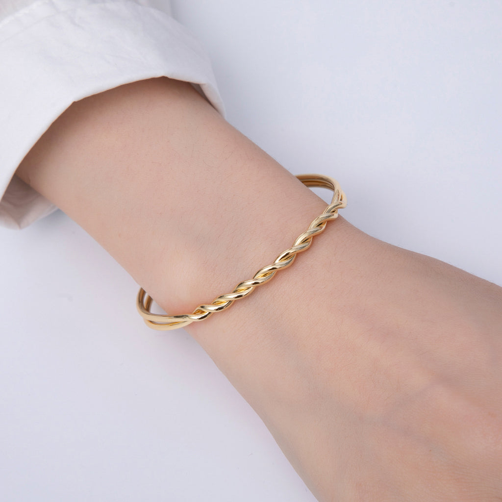14K Gold Filled Double Twisted Knot Band Cuff Bracelet | Brac-060001