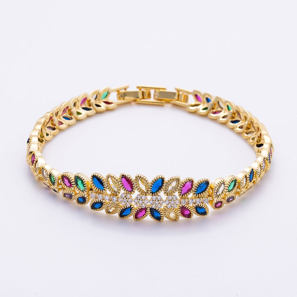 16K Gold Filled 13mm Multicolor Marquise Micro Paved CZ Floral 7 Inch Adjustable Bracelet | WA-04288