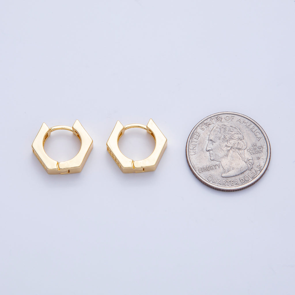 18K Gold Filled 15mm Micro Paved CZ Hexagon Cartilage Huggie Earrings | T341