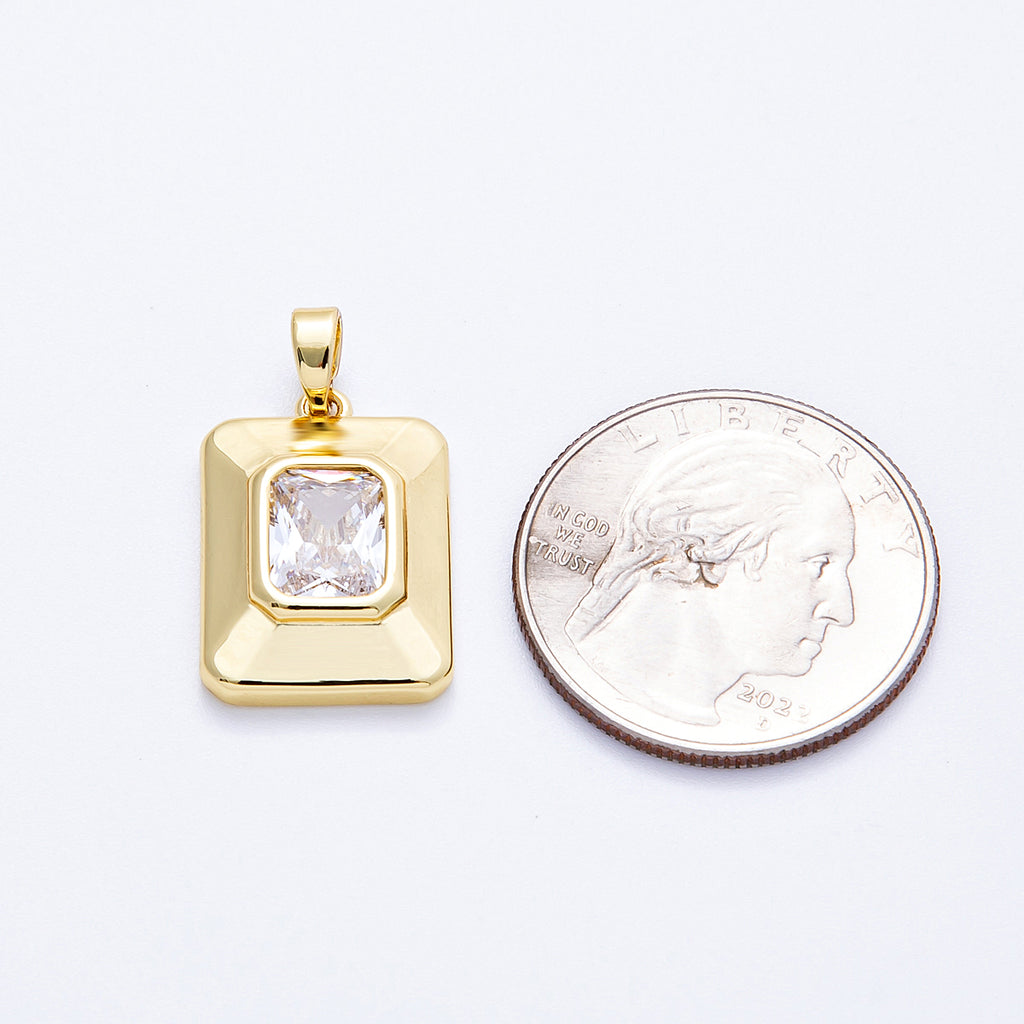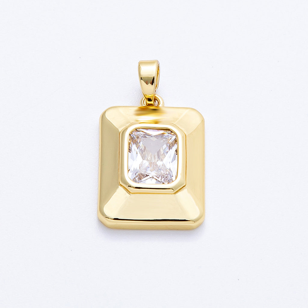 16K Gold Filled 20mm Radiant CZ Square Solitaire Tag Pendant | Charms-00205