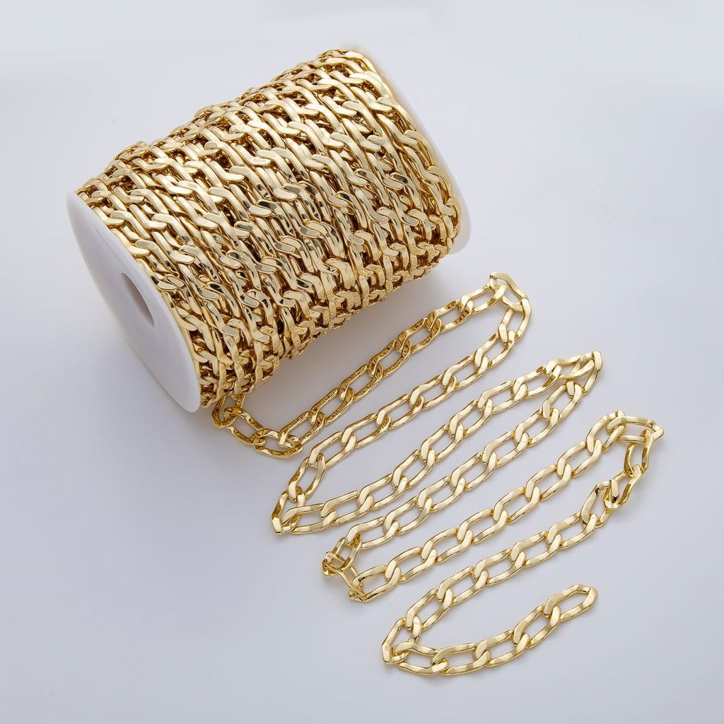 Chunky 24K Gold Filled 22mm x 10mm Flat Curb Unfinished Chain by Yard | Roll-1767
