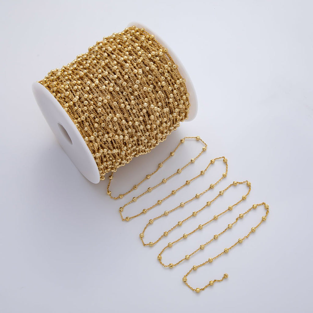 24K Gold Filled 3mm Ball Satellite Unfinished Chain by Yard | Roll-1765