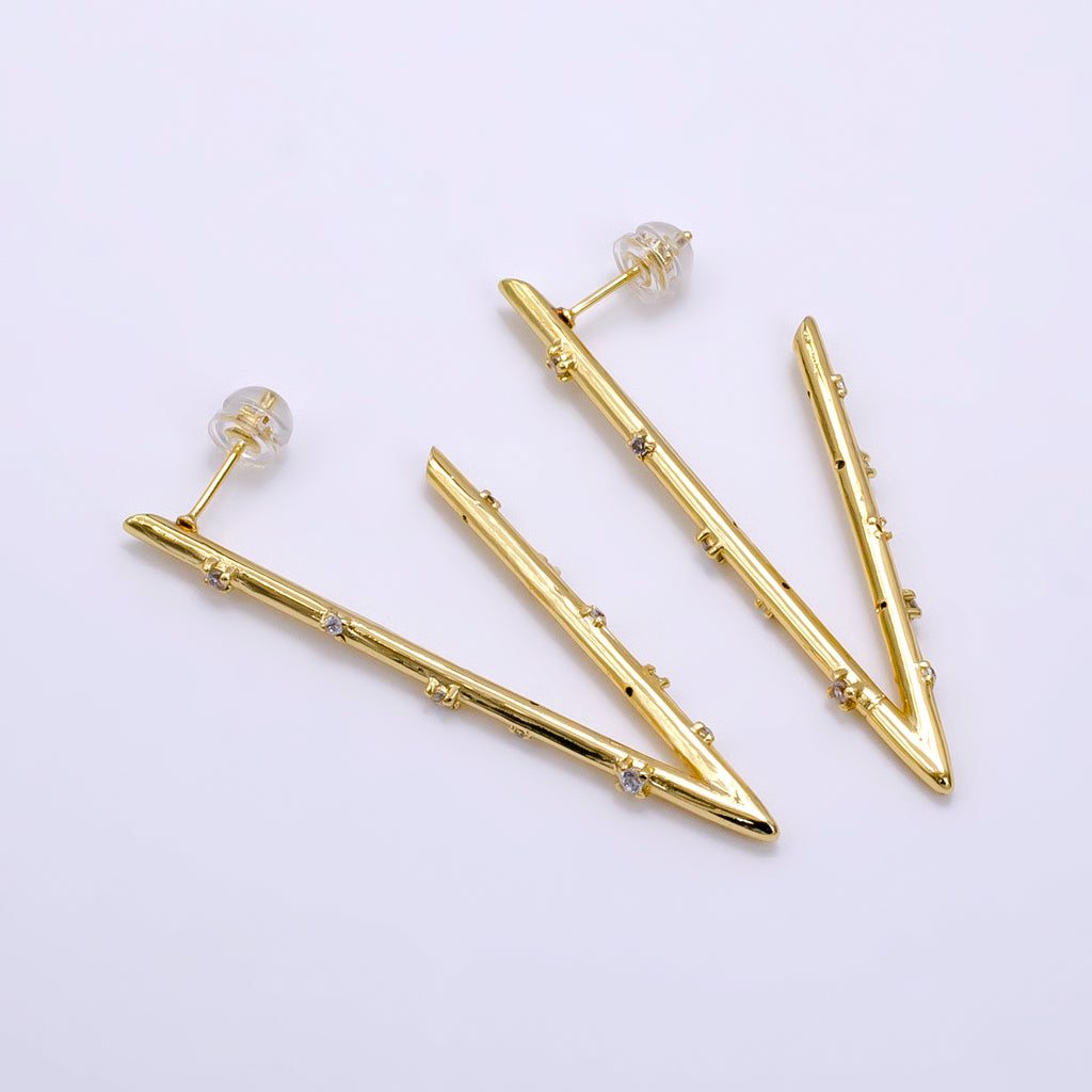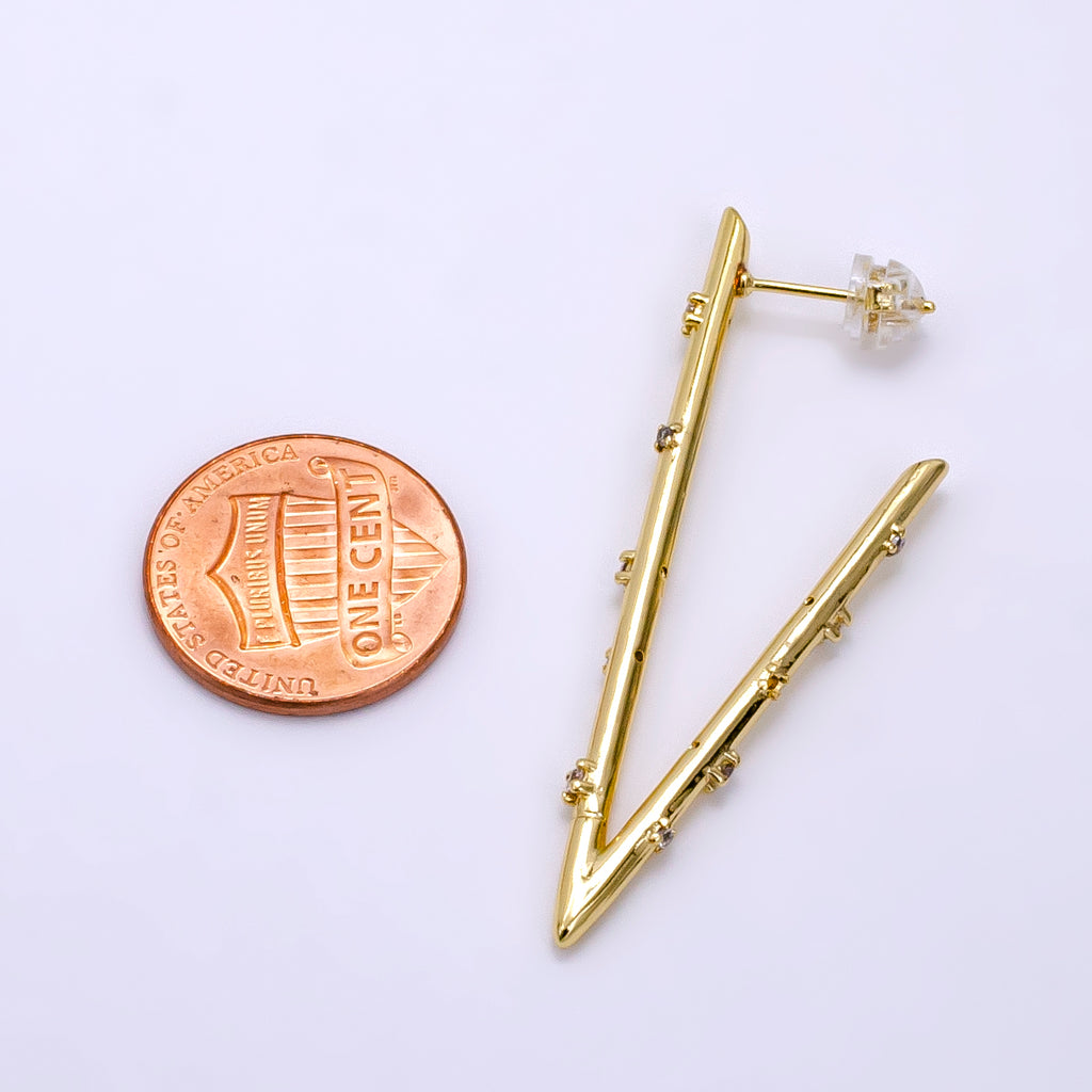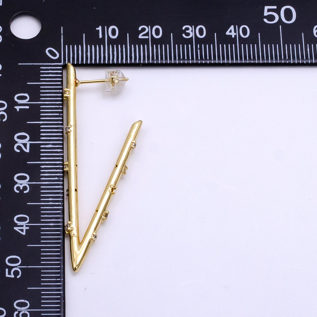 16K Gold Filled 50mm Clear CZ Dotted Triangle Hoop Earrings
