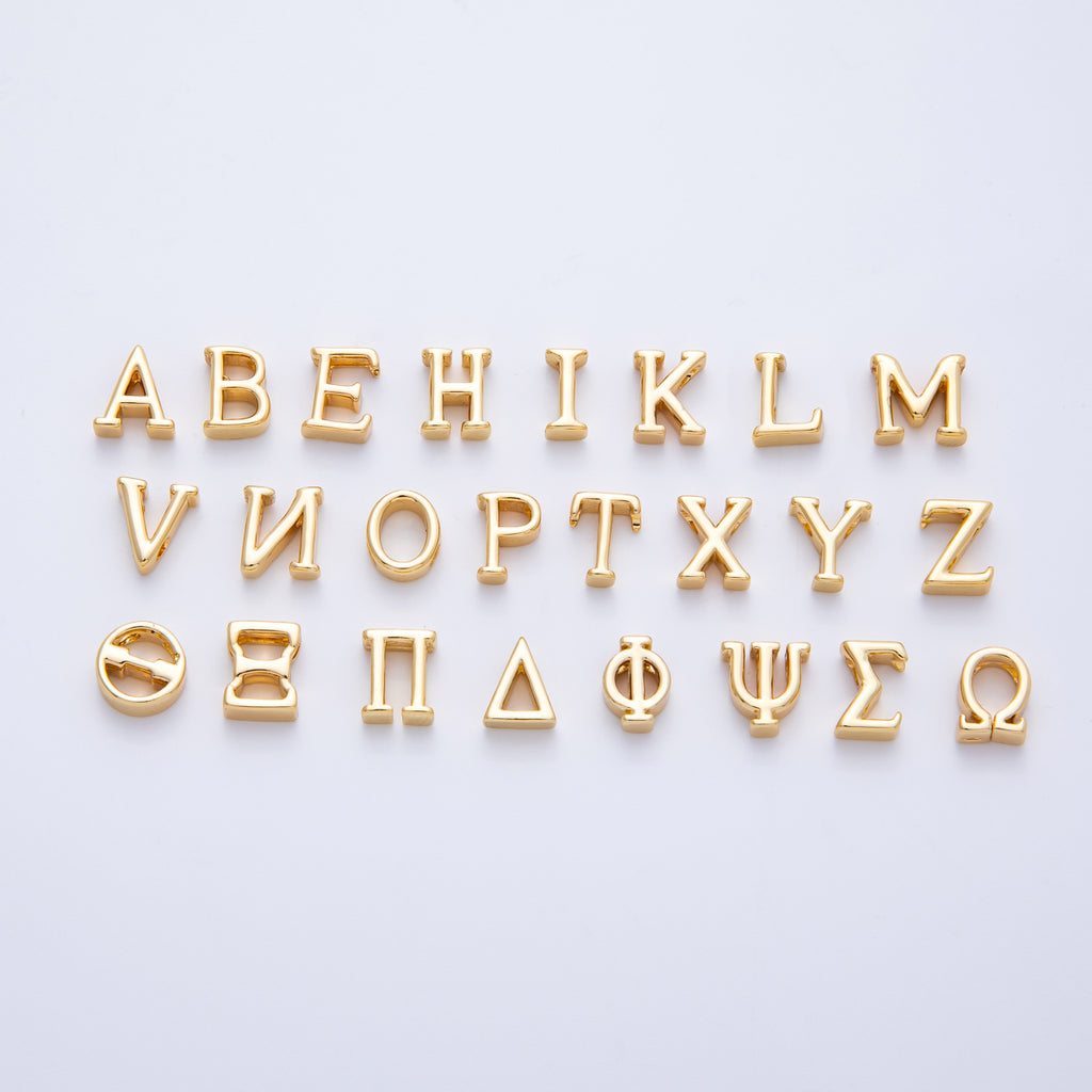 16K Gold Filled 8.5mm Minimalist Greek Initial Alphabet Letter Personalized Bead | AF235 - AF246