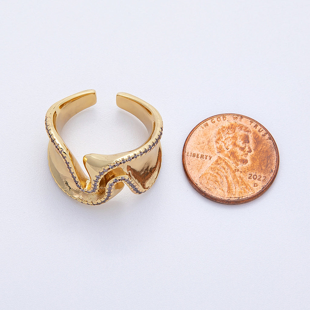 16K Gold Filled Micro Paved CZ Wavy Abstract Statement Ring | Rings-00021