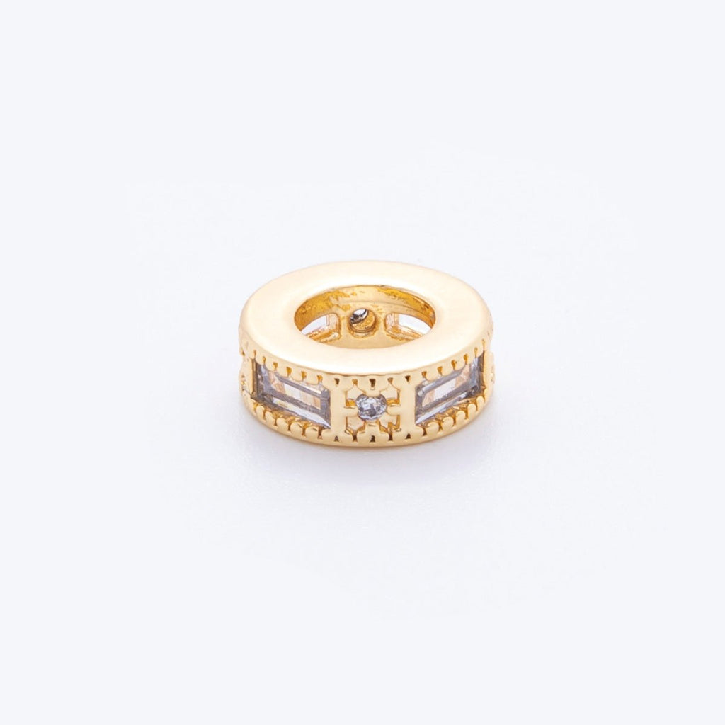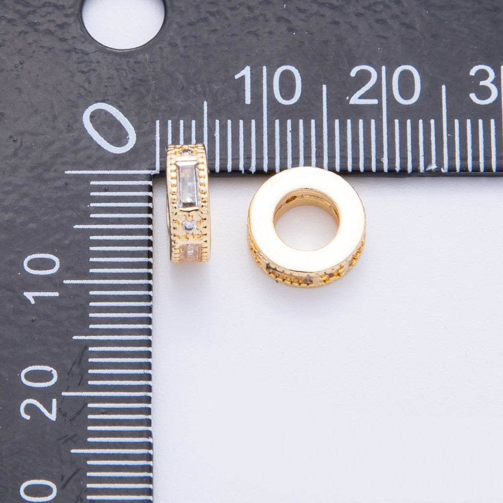 18K Gold Filled 10mm Clear CZ Baguette Lined Thin Bead Spacer | AF1041