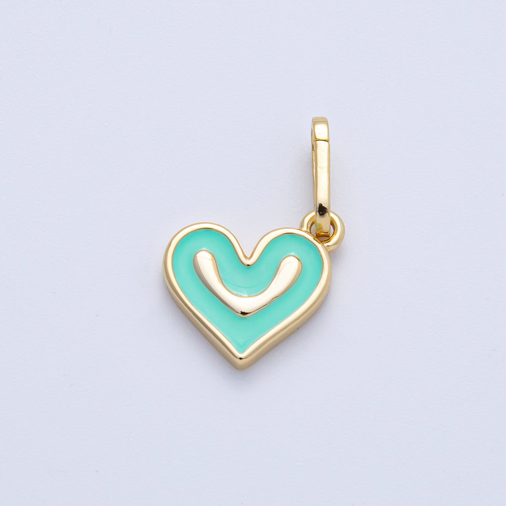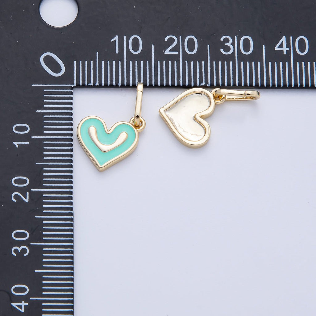 18K Gold Filled 11.5mm Green Enamel Heart Pendant | H022