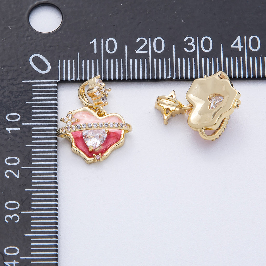 18K Gold Filled 12.5mm Pink Enamel Micro Paved CZ Heart Space Galaxy Pendant | AF1213