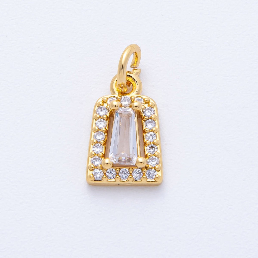 18K Gold Filled 12mm Clear Baguette Micro Paved CZ Trapezium Charm | AK158