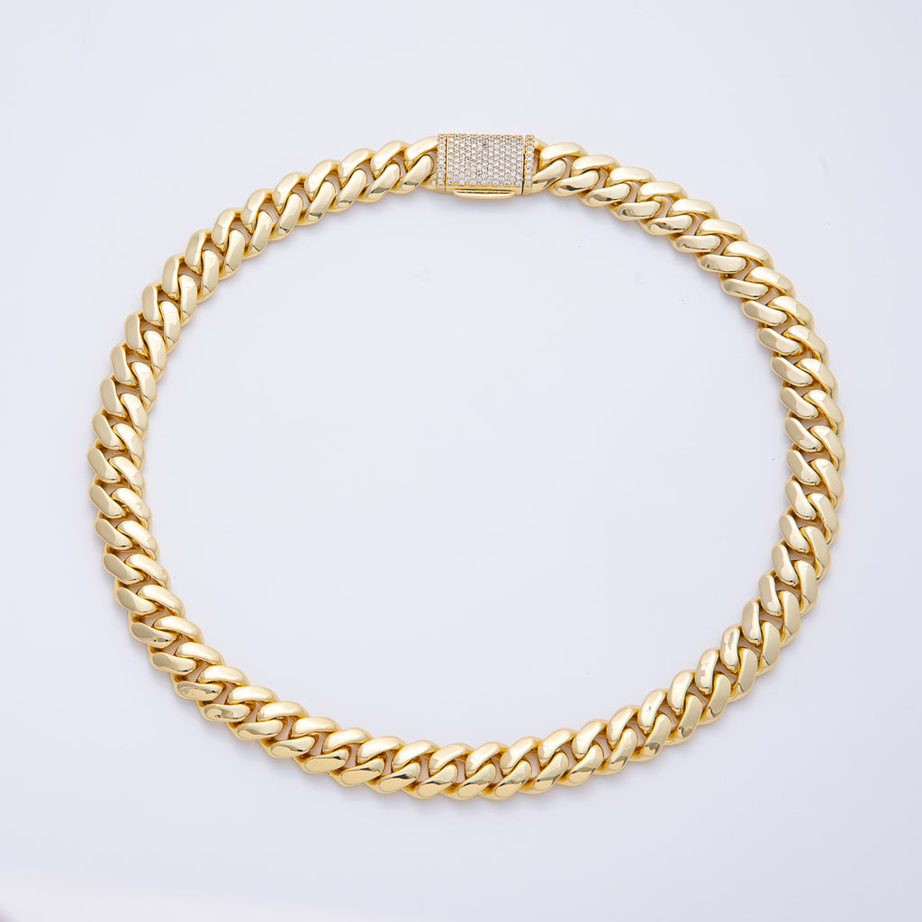 18K Gold Filled 12mm Curb Chain Micro Paved Clasps 17 Inch Necklace | WA-3945