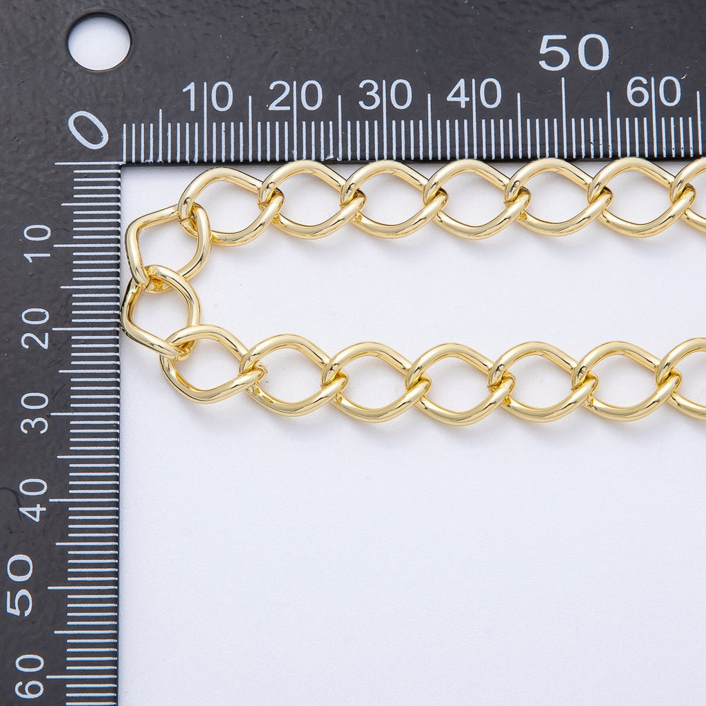 18K Gold Filled 12mm x 9mm Cable Curb Unfinished Chain by Yard | Roll-1808