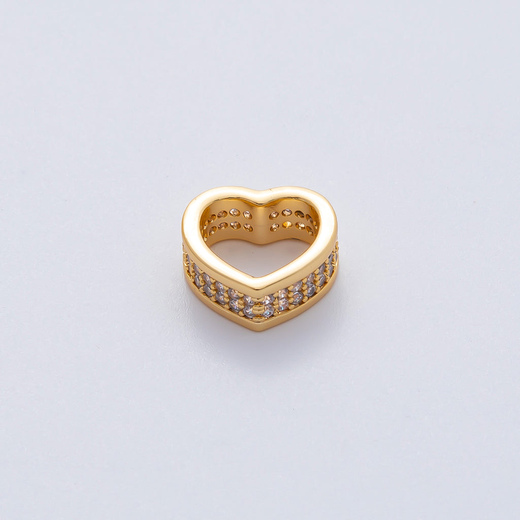 18K Gold Filled 13mm Micro Paved CZ Heart Rondelle Spacer Bead | B407