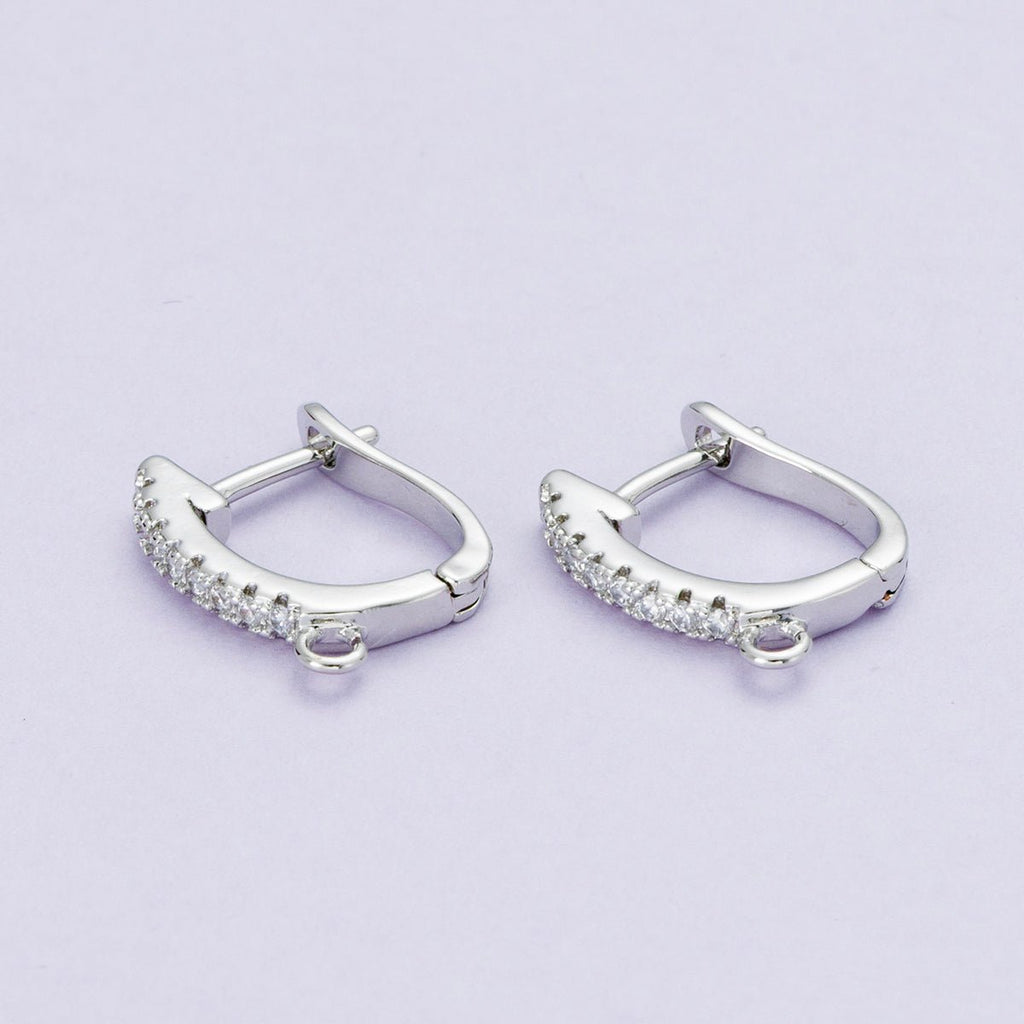 18K Gold Filled 14.5mm Micro Paved CZ U-Shaped Hoop Earrings in Gold & Silver | Findings-00099 Findings-00100