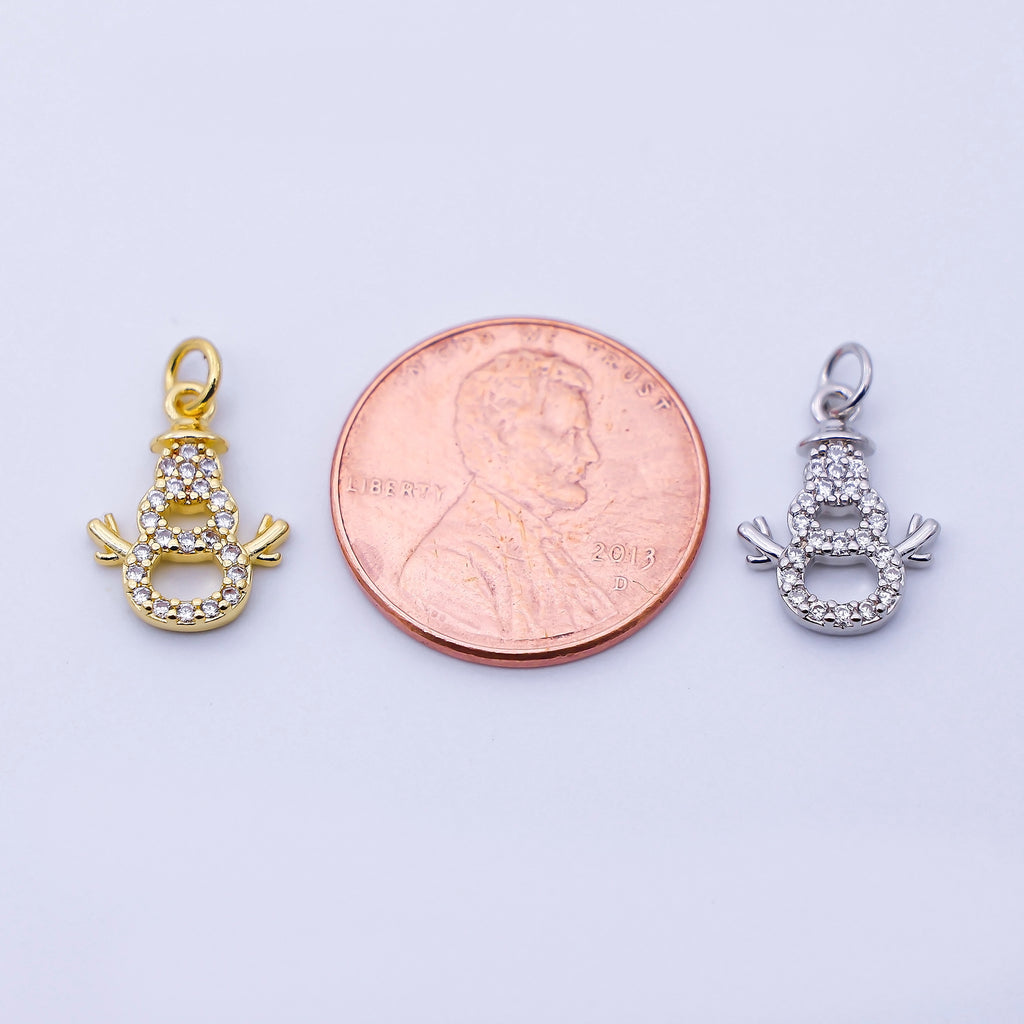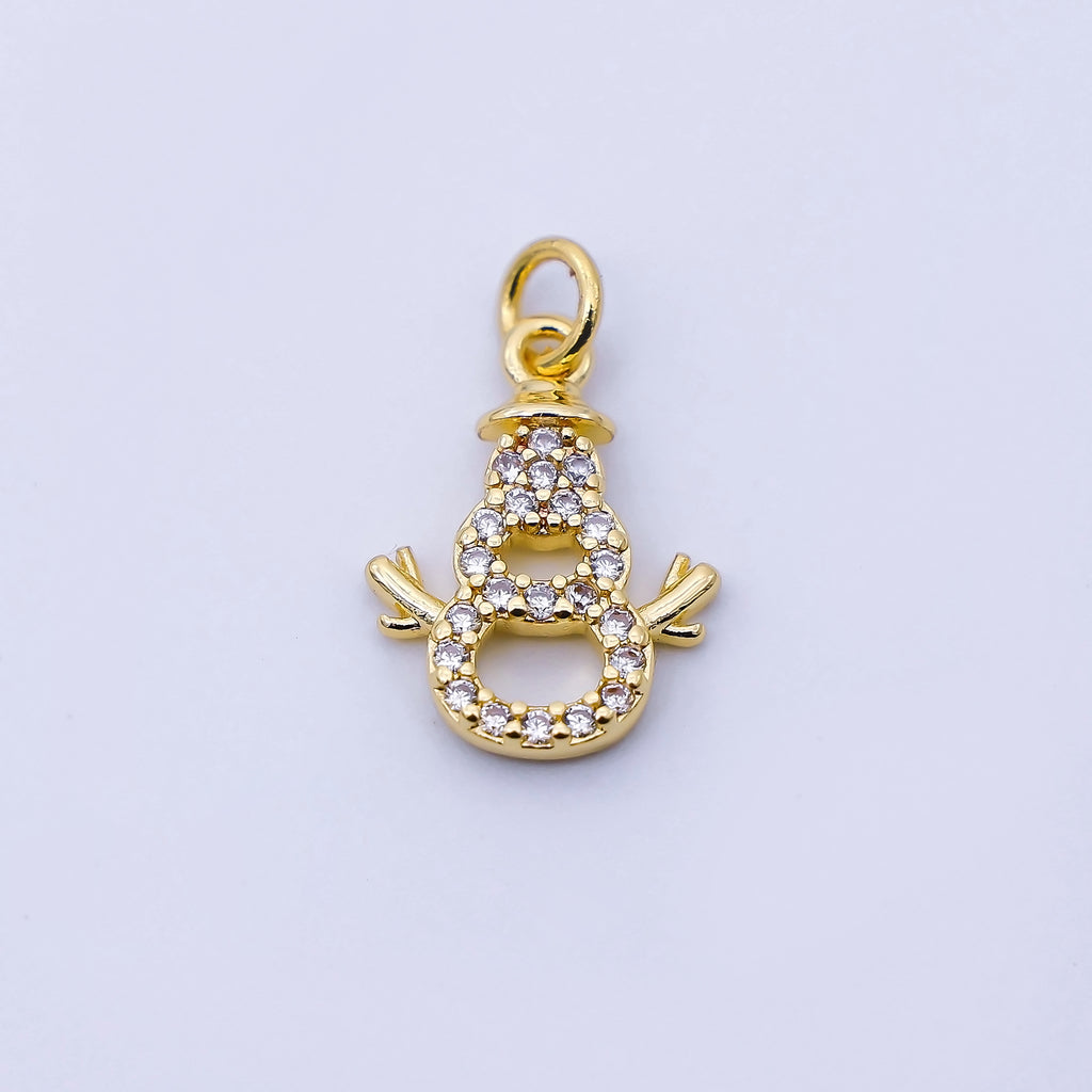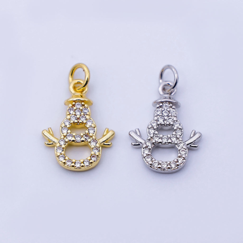 24K Gold Filled 14mm Open Micro Paved CZ Snowman Charm in Gold & Silver | E027