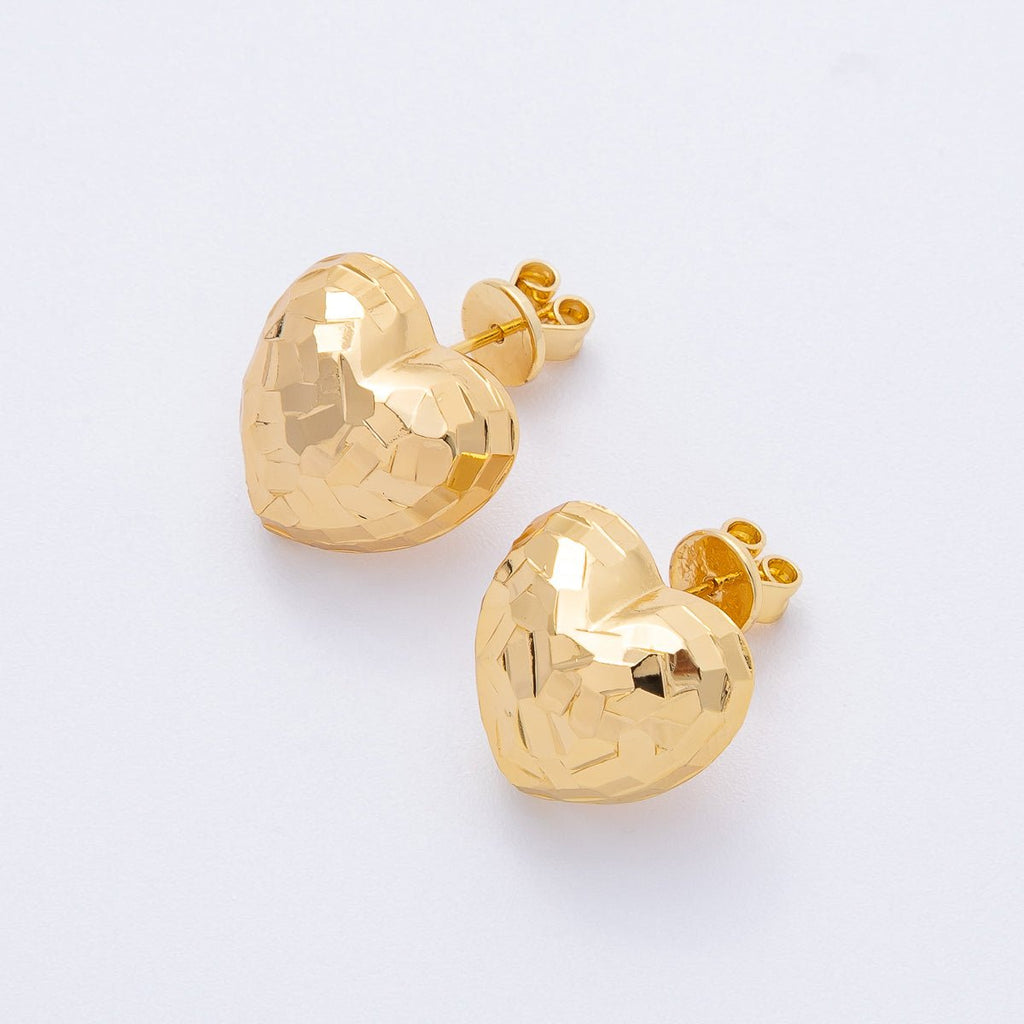 18K Gold Filled 15.5mm Multifaceted Heart Stud Earrings | AD1689
