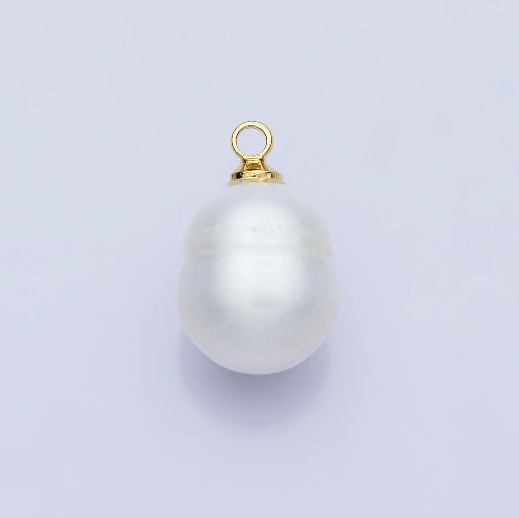 18K Gold Filled 15.5mm Ribbed Shell Pearl Oval Charm | P1556