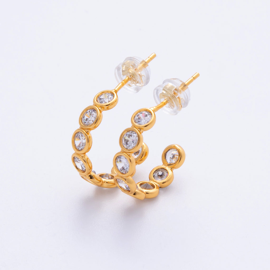 18K Gold Filled 16mm Clear CZ Round Bezel C-Shaped Hoop Earrings | AB1684