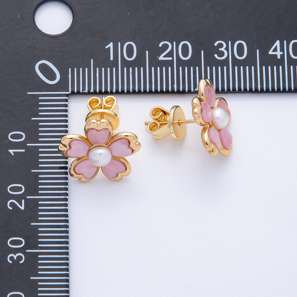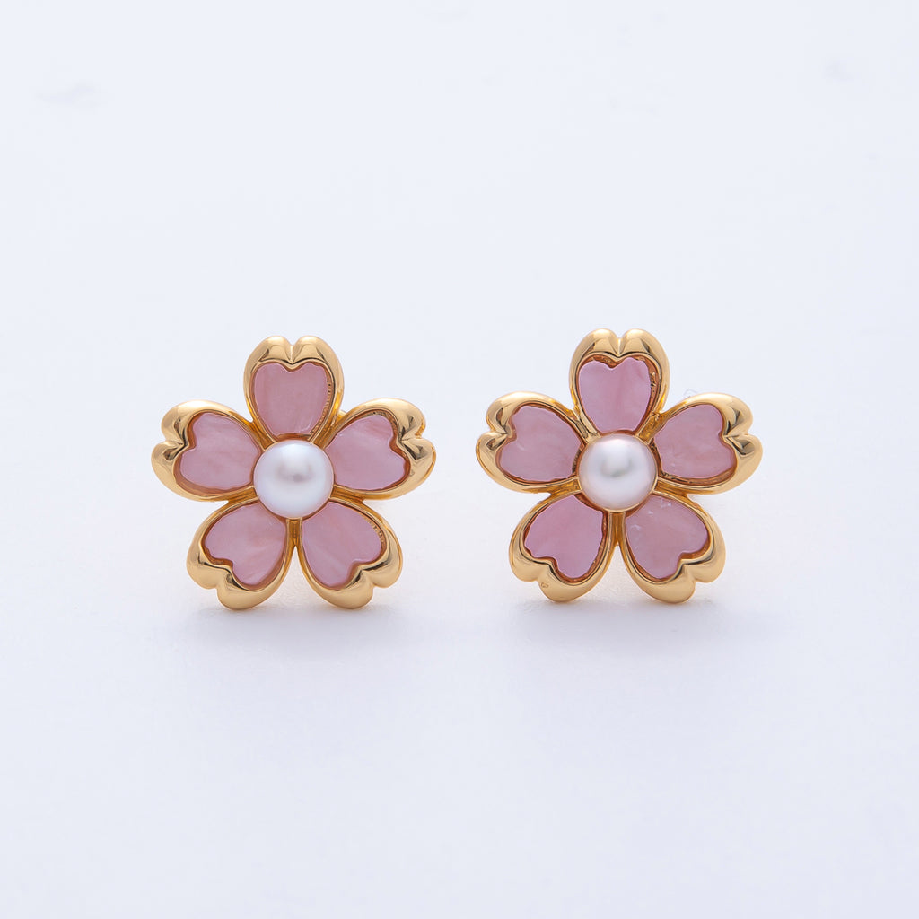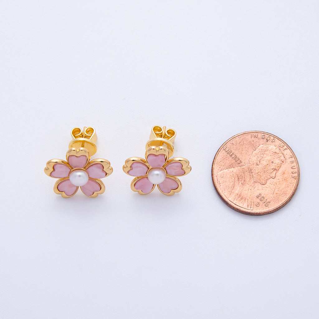 18K Gold Filled 16mm Shell Pearl Pink Flower Stud Earrings | AE828