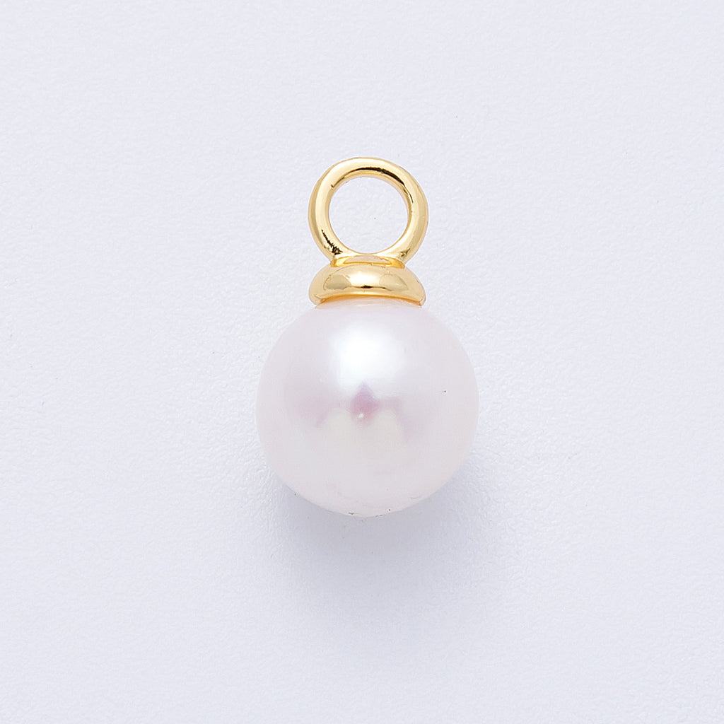 18K Gold Filled 16mm Shell Pearl Ringed Classic Round Pearl Drop Charm | CHARMS-00158