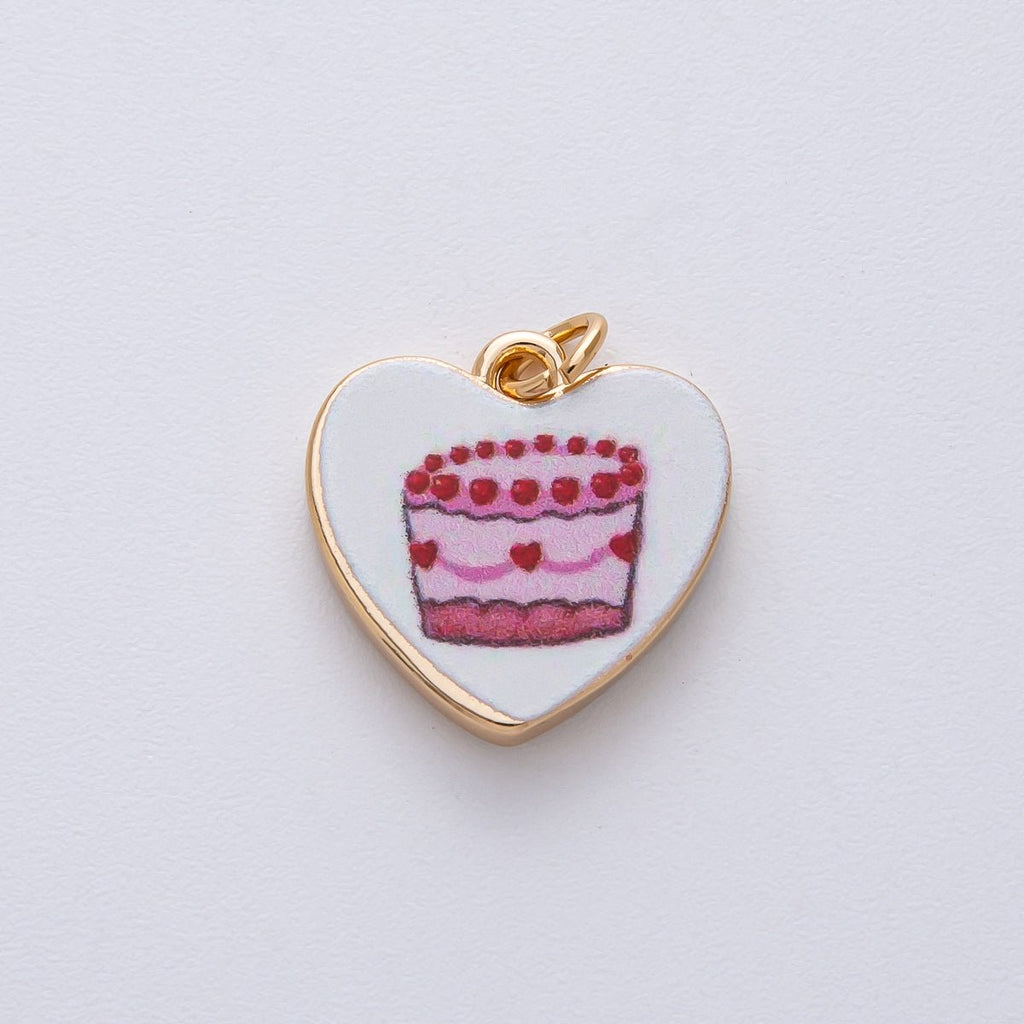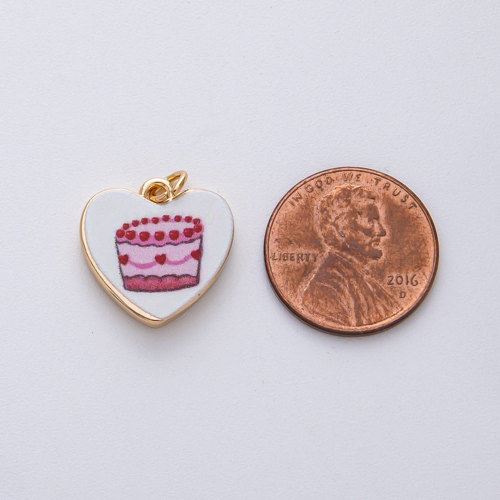 18K Gold Filled 17mm Pink Birthday Cake Round Charm | AF1605