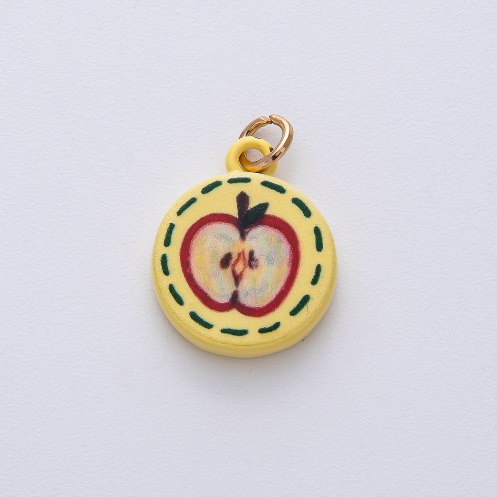 18K Gold Filled 18mm Apple Slice Fruit Yellow Enamel Round Charm | AF1616
