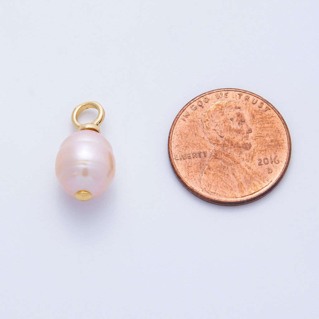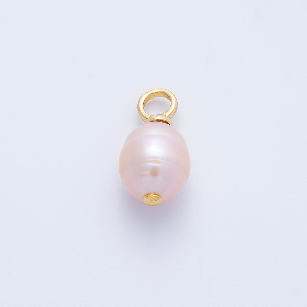 18K Gold Filled 18mm Ringed Pink Freshwater Pearl Charm | AF643