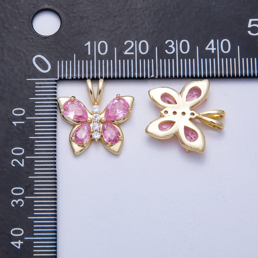 18K Gold Filled 19mm Pink CZ Micro Paved Butterfly Mariposa Animal Pendant | Charms-00538