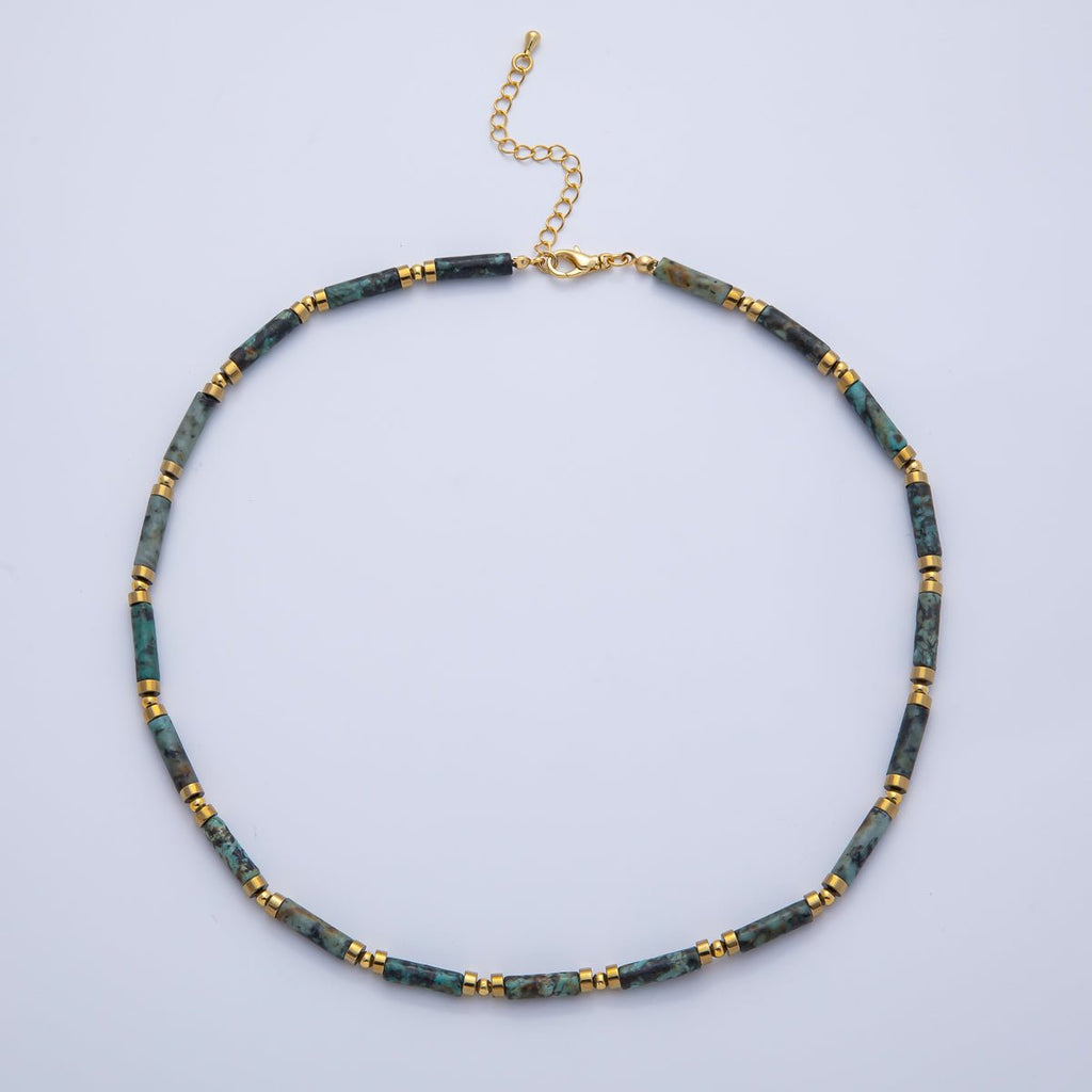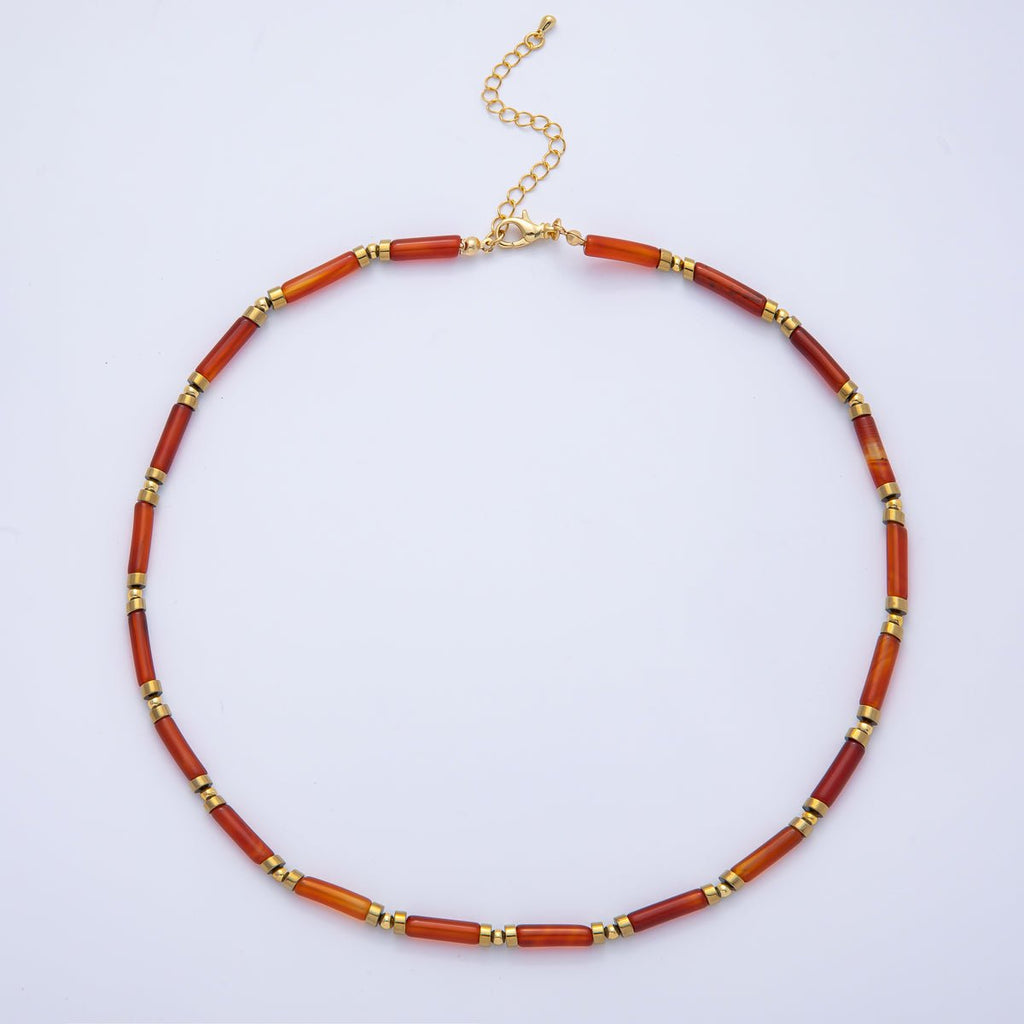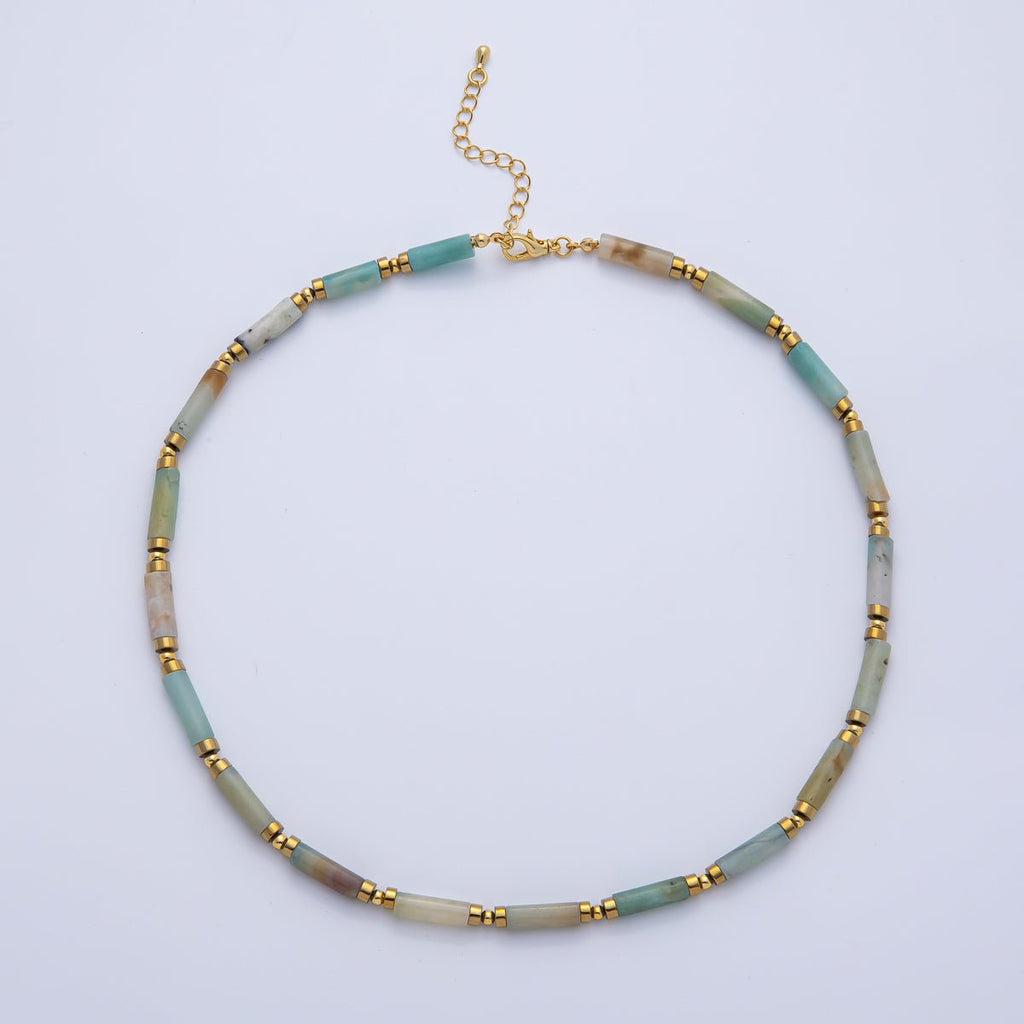 18K Gold Filled 2.8mm Natural Gemstone Tube 16.5 Inch Choker Necklace | WA-3930 ~ WA-3938