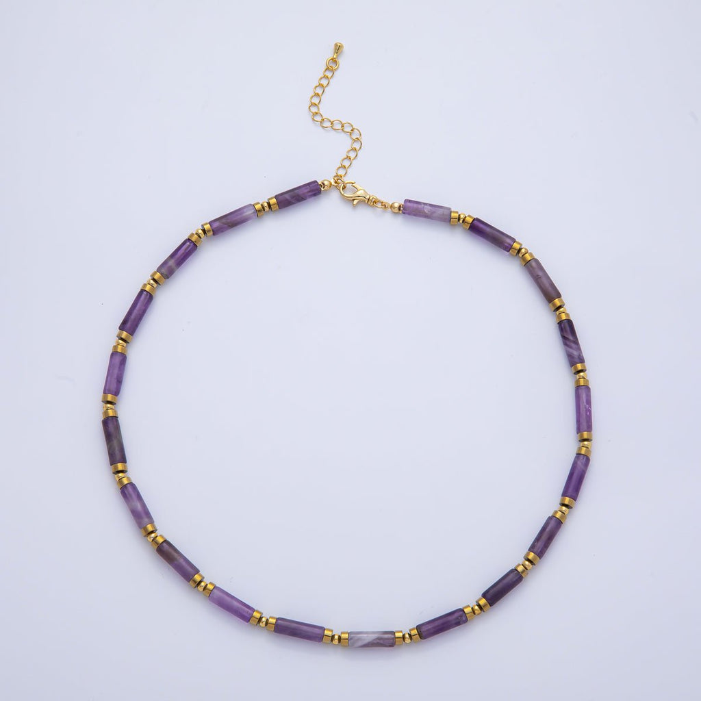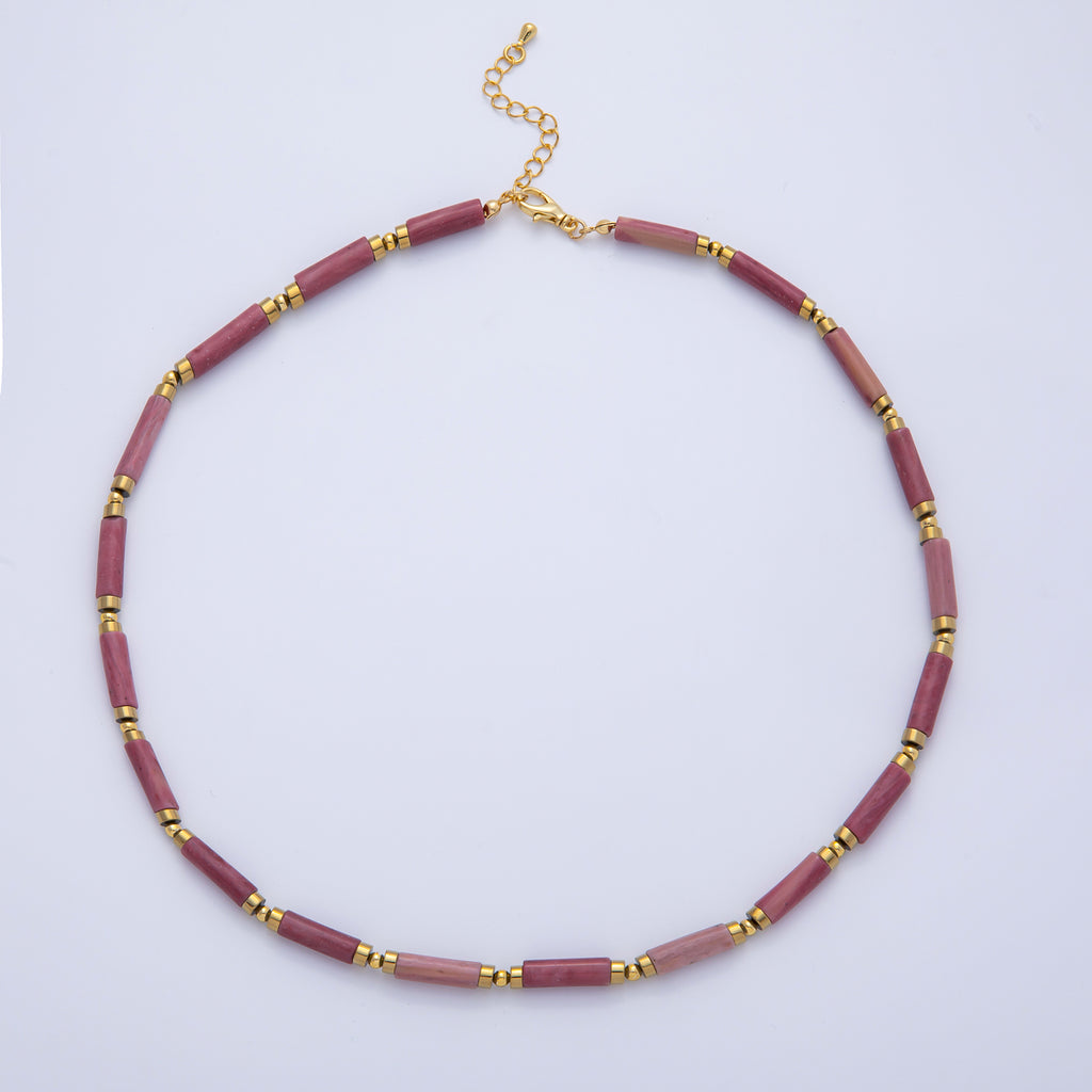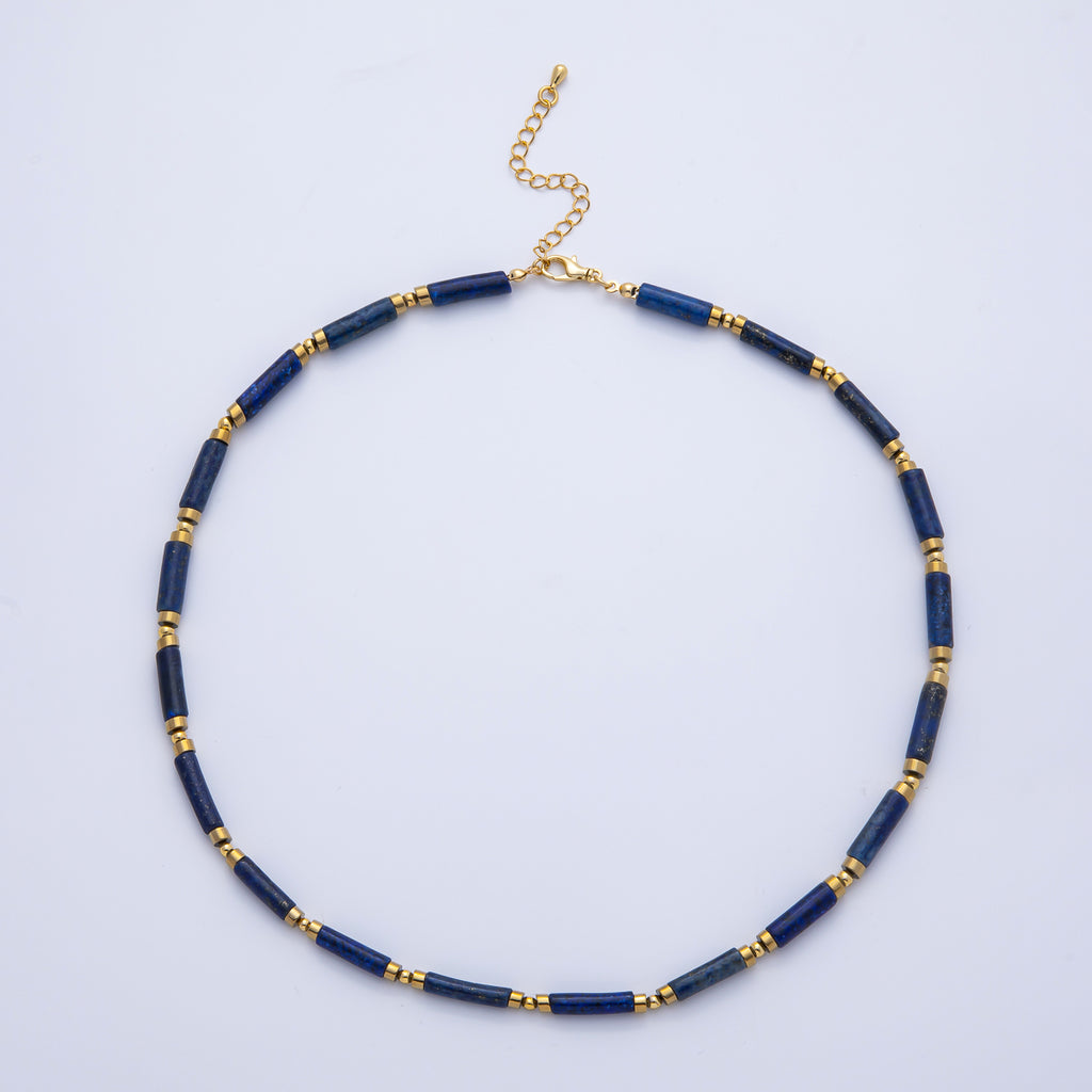 18K Gold Filled 2.8mm Natural Gemstone Tube 16.5 Inch Choker Necklace | WA-3930 ~ WA-3938