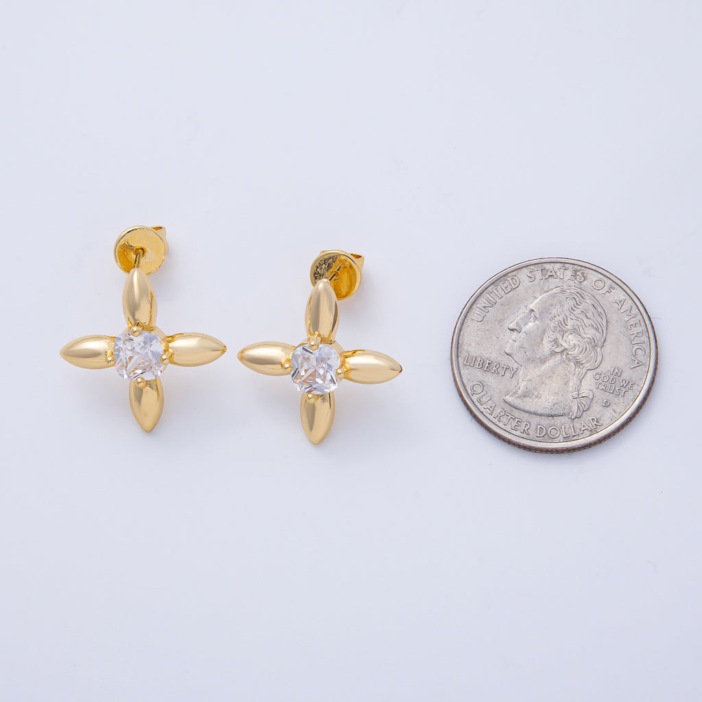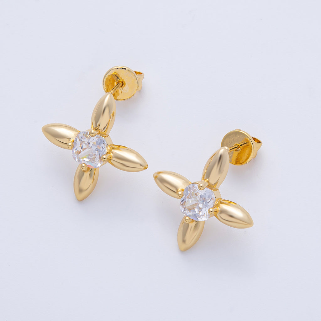 18K Gold Filled 20mm Clear CZ Petal Flower Stud Earrings | T129