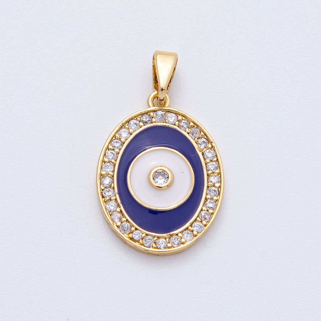18K Gold Filled 20mm Evil Eye Micro Paved CZ Enamel Oval Pendant | AF1217