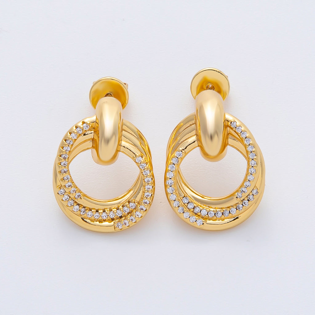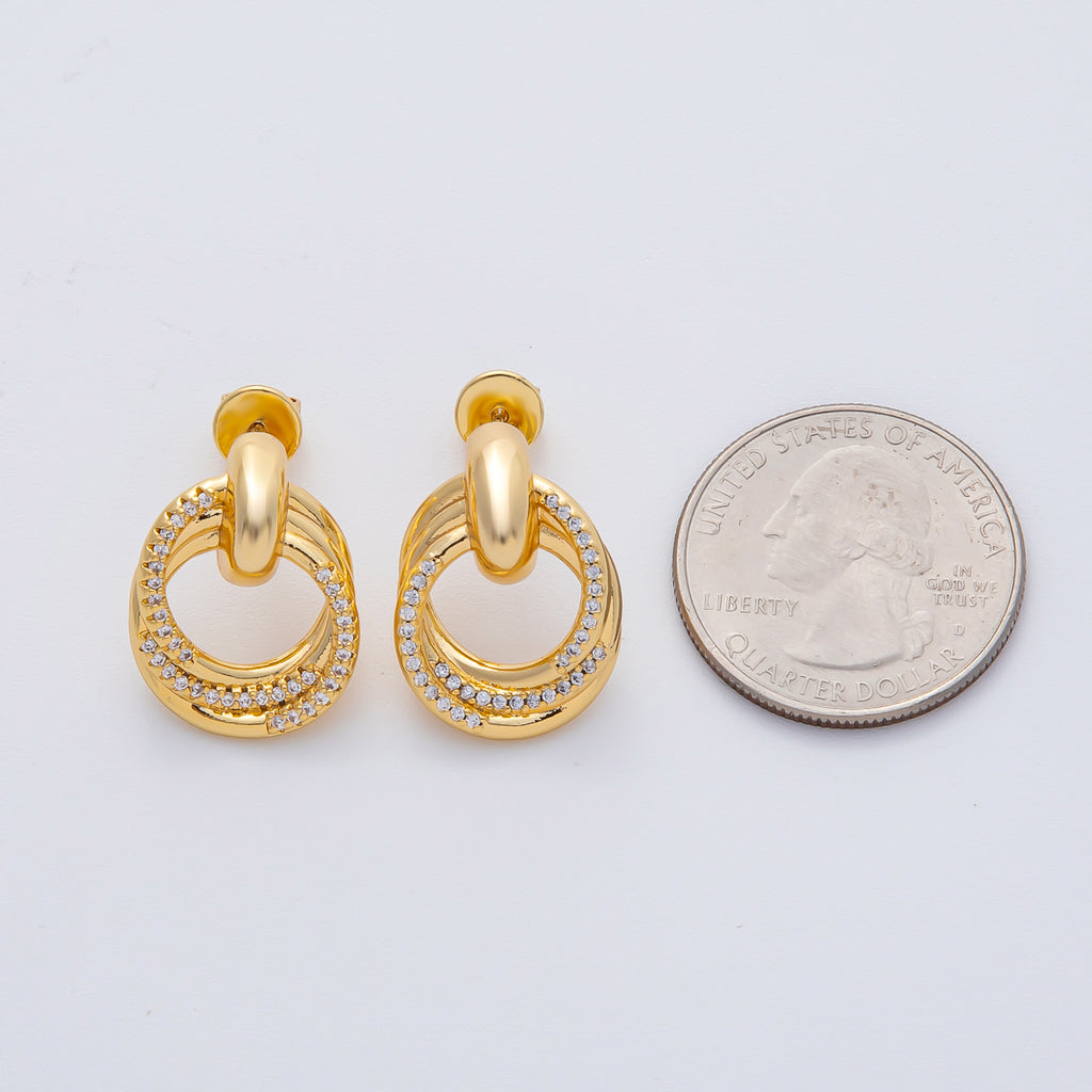 18K Gold Filled 21mm Micro Paved CZ Circular Doorknocker Drop Stud Earrings | AD1632