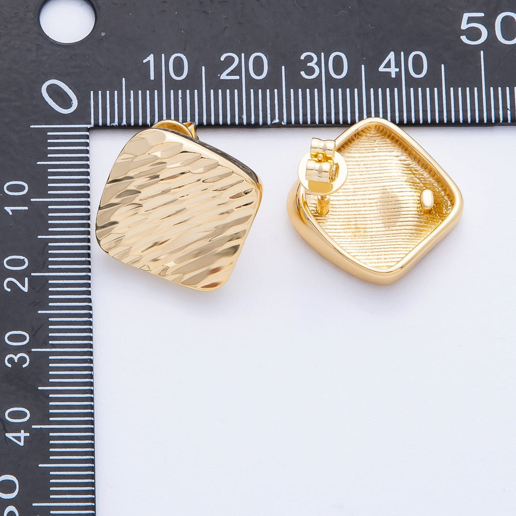18K Gold Filled 22mm Elegant Rhombus Textured Stud Earrings | EARRINGS-00001