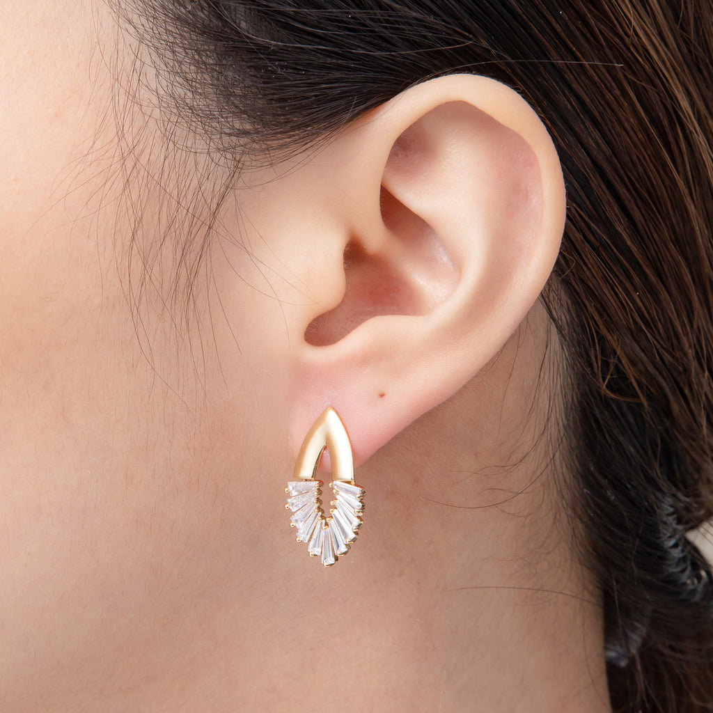 18K Gold Filled 23mm Open Baguette Navette Geometric Drop Stud Earrings | Q169