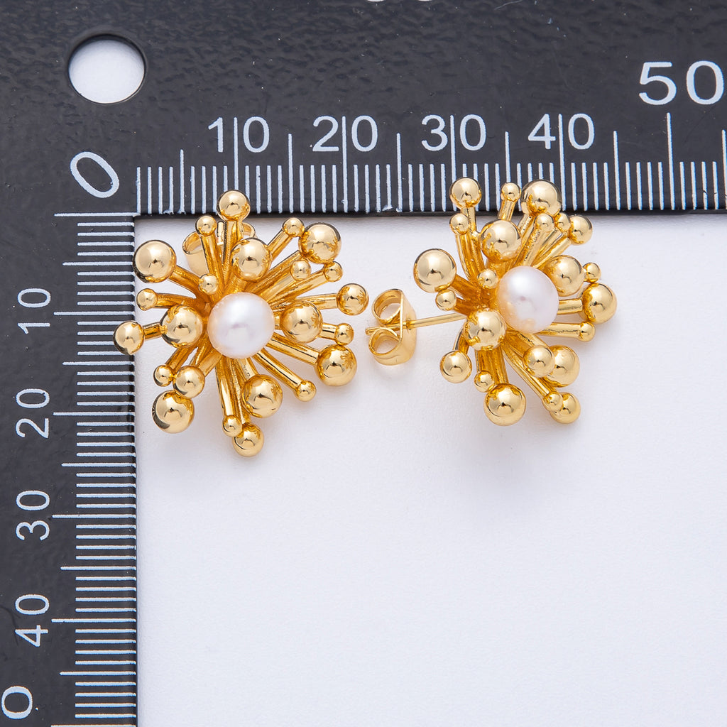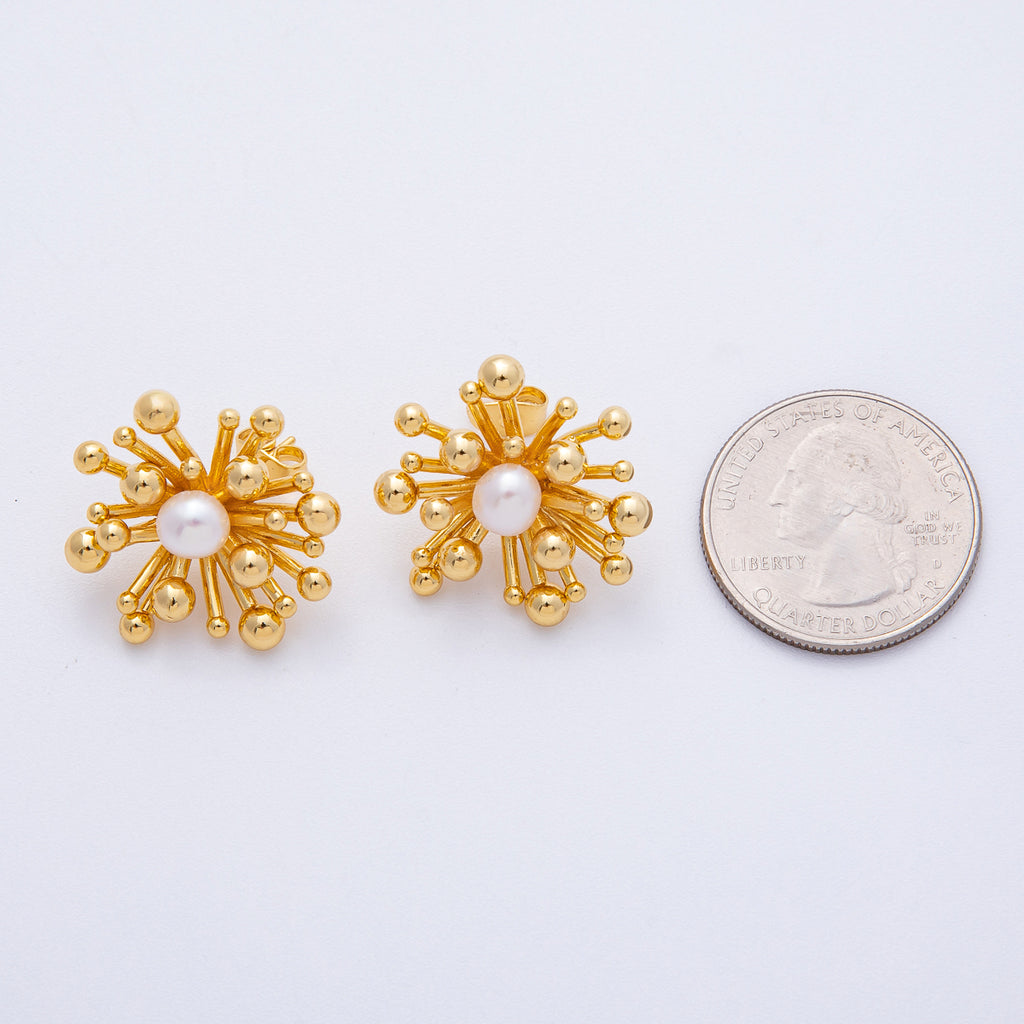 18K Gold Filled 24mm Shell Pearl Bubble Bar Burst Stud Earrings | AD1684
